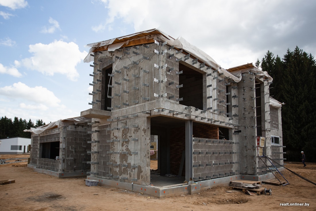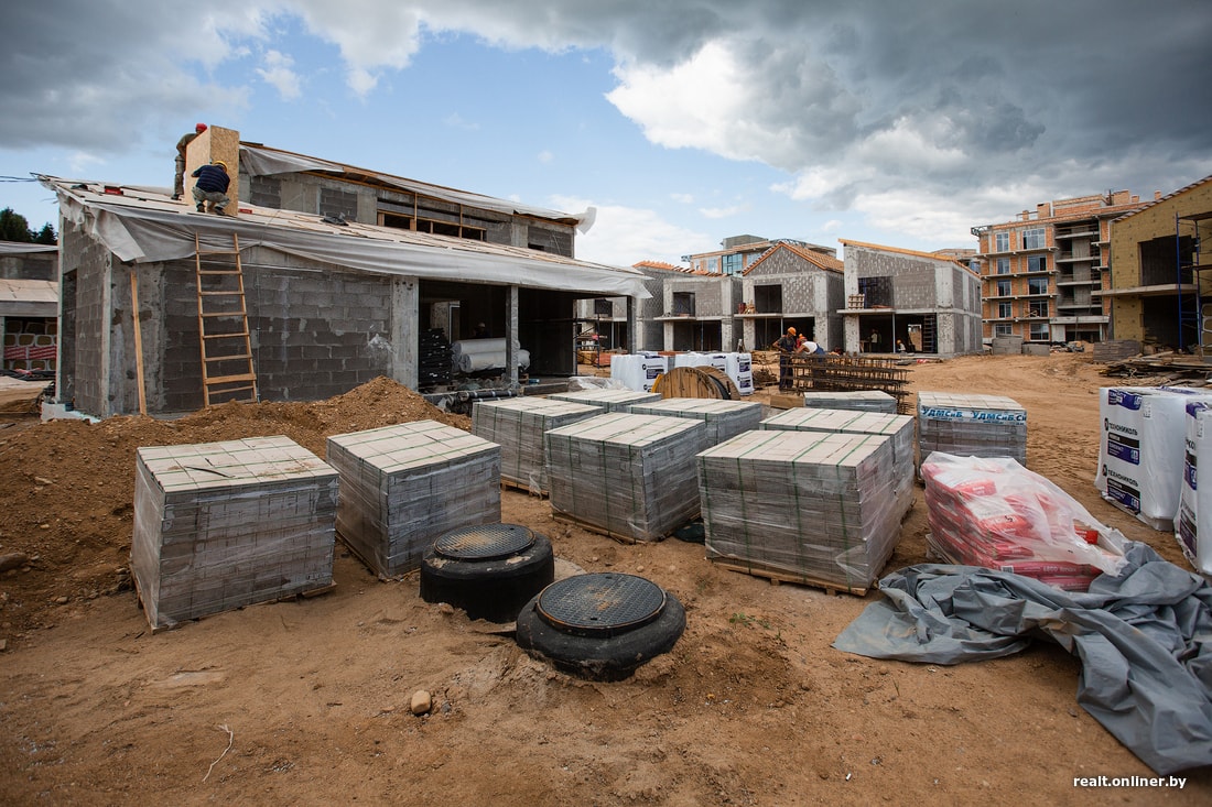 — Это усадебная застройка в черте Минска с инженерными сетями городского типа. Здесь подведены все коммуникации: центральный водопровод, газ, электричество, оптоволокно, телефонная связь, центральная канализация. Сточные воды будут собираться в очистные сооружения — на территории не будет ни луж, ни заболоченности, — поясняет ведущий инженер УКСа Центрального района Иван Злобин. — Все дома строятся из керамзитобетонных блоков толщиной 400 миллиметров. По надежности и теплотехническим характеристикам этот материал превосходит газосиликат, пусть и обходится дороже. Каждому собственнику на правах пожизненного наследуемого владения предоставляется земельный участок. Площадь разная: в таунхаусах — от 3 соток, в двухквартирных блокированных домах — 4—5 соток.