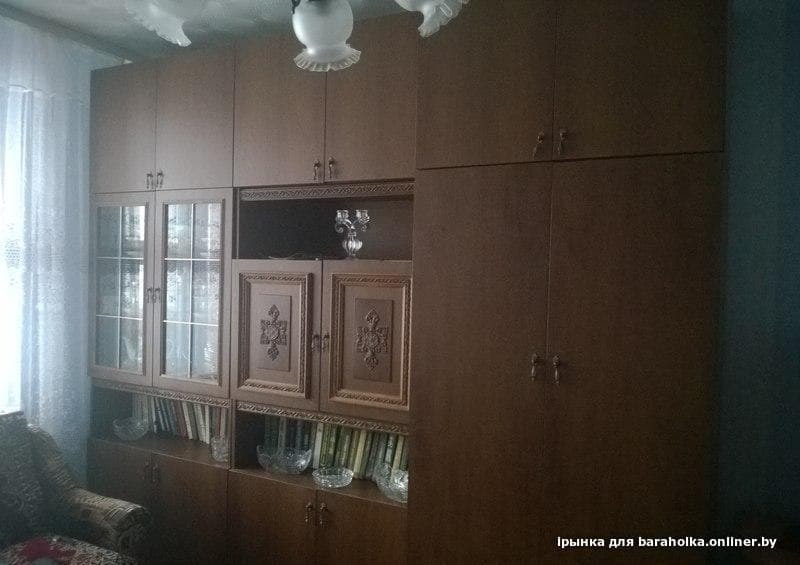 Наконец, за 180 рублей продавец готов расстаться с 4-метровой секцией советских времен. «Качество советской мебели, неубиваемые фасады покрыты натуральным деревом-шпоном. Эта горка вмещает себя барное отделение с задней частью из зеркала, а также множество шуфлядок, которые плавно и бесшумно скользят (РЕАЛЬНО БЕСШУМНО). Все дверки работают, и вообще все работает исправно. Ценителям изыска цвета красного дерева оттенок очень понравится», — расписывает достоинства продавец. Авторская стилистика сохранена.