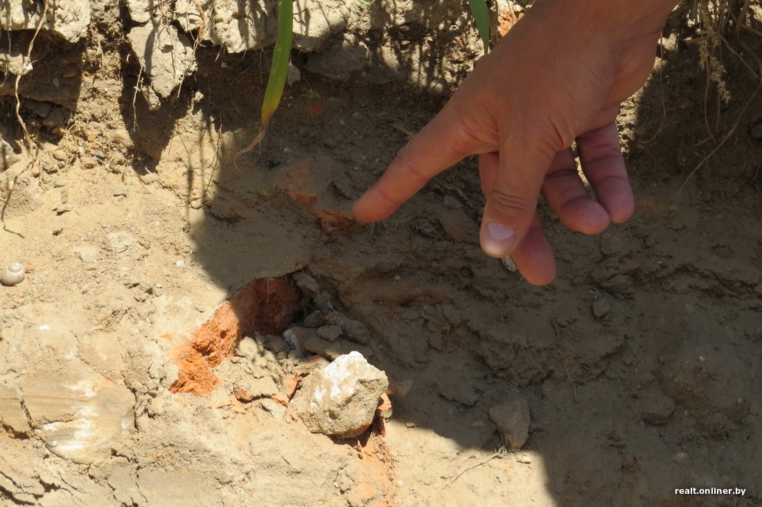 Это срез, который удобно ковырять пальцем. Сверху, где лежат отвалы грунта, еще интереснее. В них собственно грунта, похоже, меньше, чем предметов с многовековой историей.