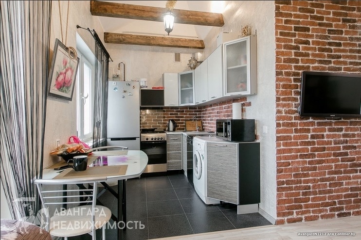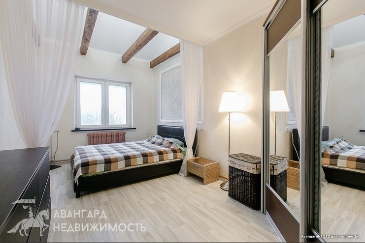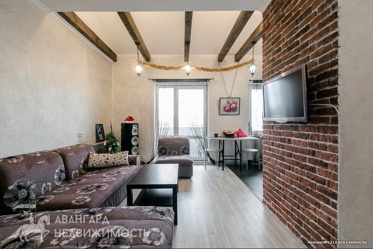 Брутальные балки, которые одновременно создают лофтовый и скандинавский мотивы в квартире, разместил на потолке хозяин 66-метровой «трешки» на Данилы Сердича. Продаваемый за $115 000 по курсу объект непростой: это двухуровневая мансардная квартира, которая расположена на шестом и седьмом этажах семиэтажного дома. «Высокие потолки, мансардные окна, внешние батареи отопления — такое редко встретишь в Минских квартирах, объект будет уникален», — не скромничает агент.