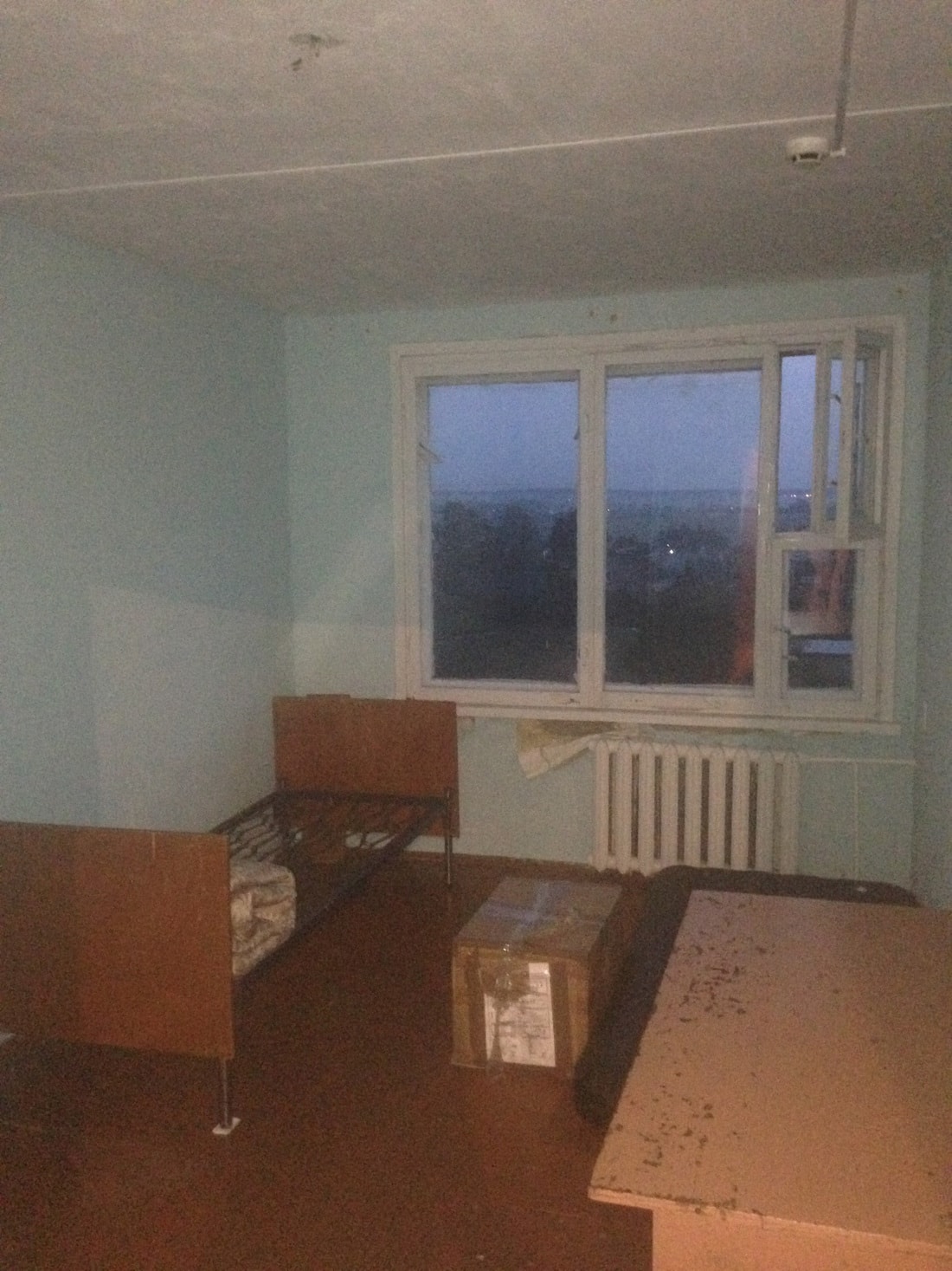 Про него и пойдет речь. Нам на пятерых дали в общежитии один блок, состоящий из двух комнат. Если условия в первом домике можно оценить на 1 балл из 10, то «общаге» можно поставить заслуженные 3 балла из 10. В общежитии уже был унитаз и вода (правда, только холодная, т. к. трубу с горячей водой туда подвести, видимо, забыли), и даже душевая (правда, с заваренными кранами). При заселении мне дали кровать, и все. Нет ни стола, ни стульев. Мебели (кроме кровати) нет вообще.
