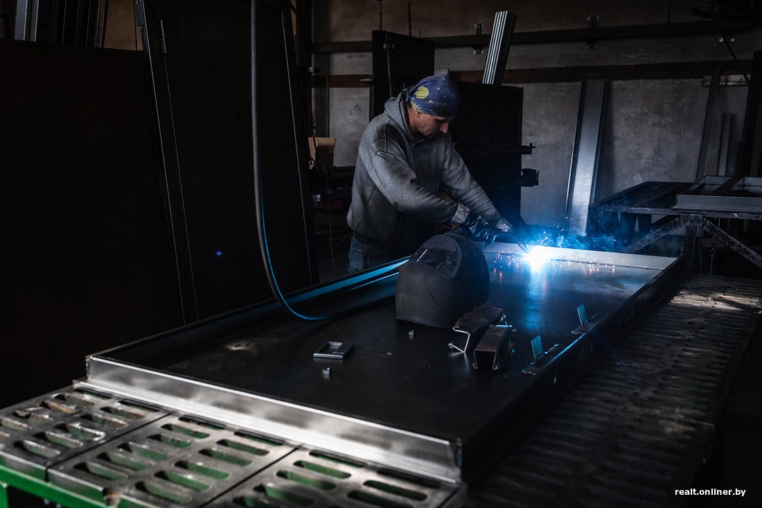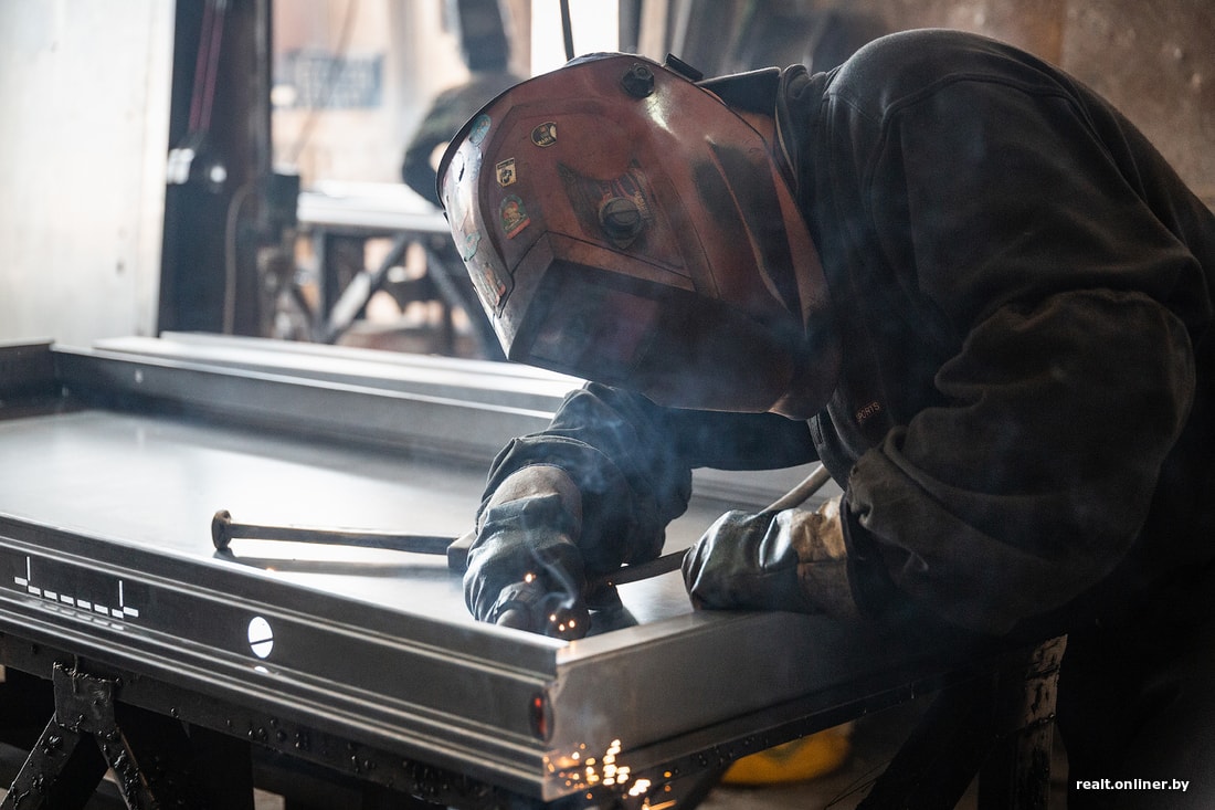 В следующий цех дверь попадает для врезки замков, а также сварки усилительных пластин и F-образных планок для надежной фиксации запорных устройств. Здесь же происходит окончательная правка изделия. Минут 20 усилий — и у клиента уже есть гарантия, что дверь не перекосит, а добраться до замков будет не так-то просто.
