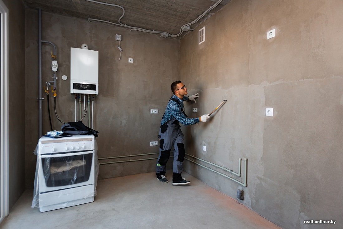 Аналогичная ситуация и с разводкой сантехники: к ванне, раковине, умывальнику, «стиралке», унитазу подведены трубы в необходимом количестве и с правильным уклоном. Тем, кто строит квартиры в минских домах, а тем более вкладывается в «полуфабрикаты», может показаться, что это чудеса наяву. Но, наверное, если хорошенько подумать, так и должен работать любой застройщик, а тем более тот, кто снимает с горожан по $1100 и выше за квадратный метр.