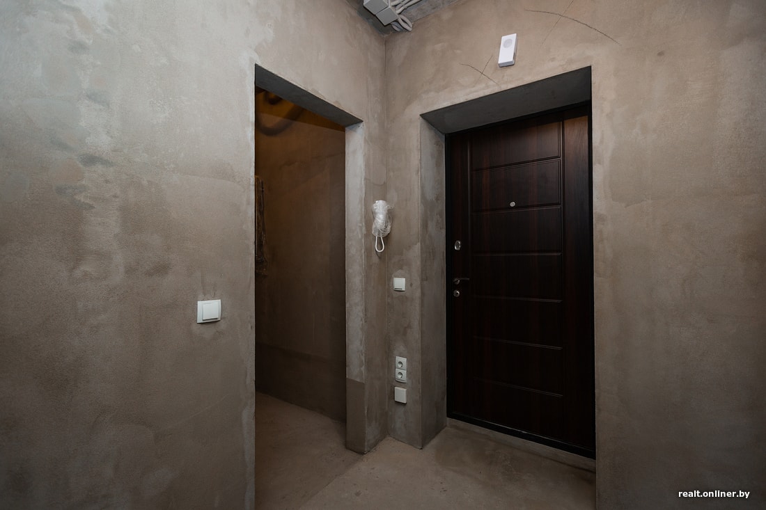 Отделка подъезда тоже не бюджетная: плитка под гранит на полу, камень на стенах, одинаковые входные двери и красивые перила вдоль лестничных пролетов — в Минске так делают не в каждом доме, претендующем на элитность.