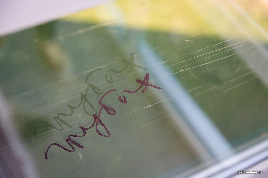 На лоджии пострадала целая сторона: большие царапины сразу на трех стеклопакетах. Они глубокие и особенно хорошо будут видны после того, как хозяева помоют окна.