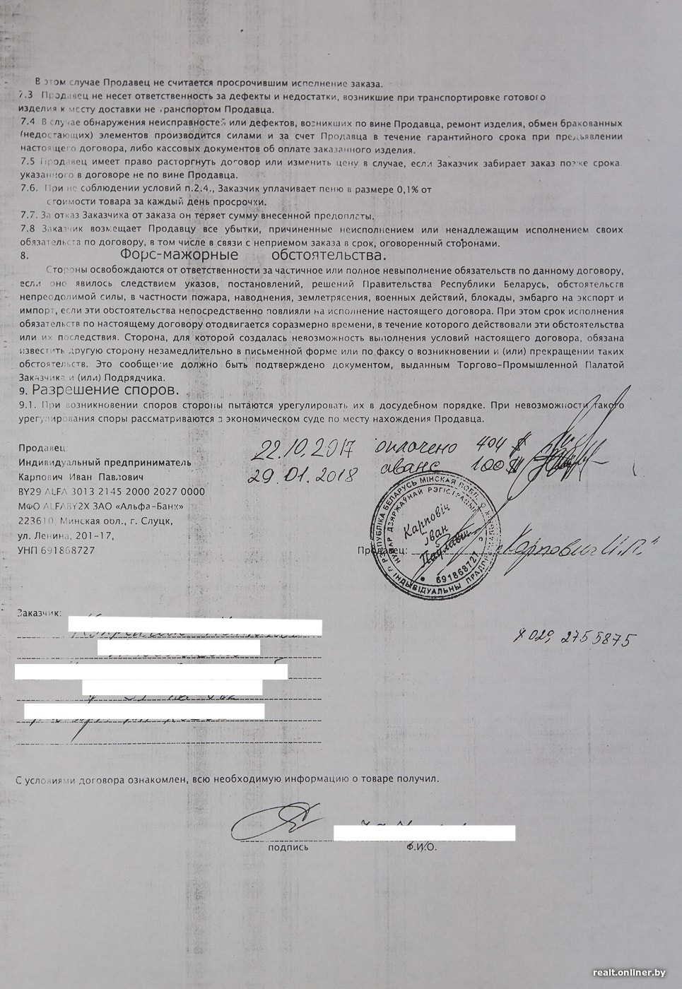 — Сначала не подвезли ДСП, потом машина на таможне задержалась, перед самым нашим отъездом в отпуск он говорил, что рабочие не успевают наклеить кромку. «Ладно, не спешите, — сказали мы, — подождем до конца отпуска». Уехали в отпуск 19 августа, 22-го он в последний раз вышел на связь и исчез. В Минск мы приехали 29 августа, и первое, что я сделала, — позвонила Карповичу — абонент недоступен. Написала в Viber — не доставлено, в почту — без ответа. И только после этого нашла кучу негативных отзывов в интернете. Узнала, что у него есть задолженность перед юрлицом, поэтому в суд обращаться нет смысла. Ну будет у меня на руках постановление суда о том, что Карпович должен мне денег. Как это мне поможет, если он не возвращает долги и не выходит на связь?