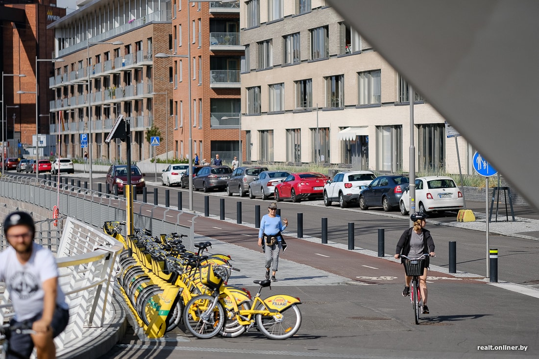 Естественно, это сделано специально, чтобы стимулировать отказ от своего автомобиля. Владение машиной — удовольствие дорогое, и надо приготовиться за него платить. Забудьте про привычные нам плоскостные парковки, уличные места — гостевые (и бесплатные в течение лишь первых часов), а жильцы могут воспользоваться подземными паркингами под домами. Все сделано для того, чтобы избавить внутрирайонные проезды от захламляющих их автомобилей и вместо этого пересадить местных жителей на велосипеды, автобусы, трамваи, метро, тем самым сократив внутригородской трафик.