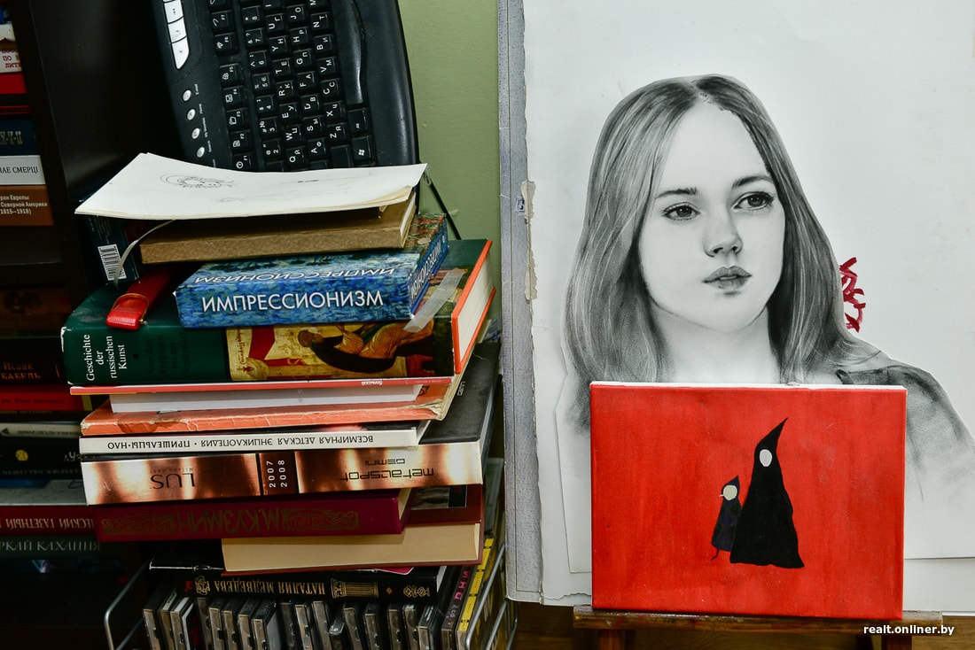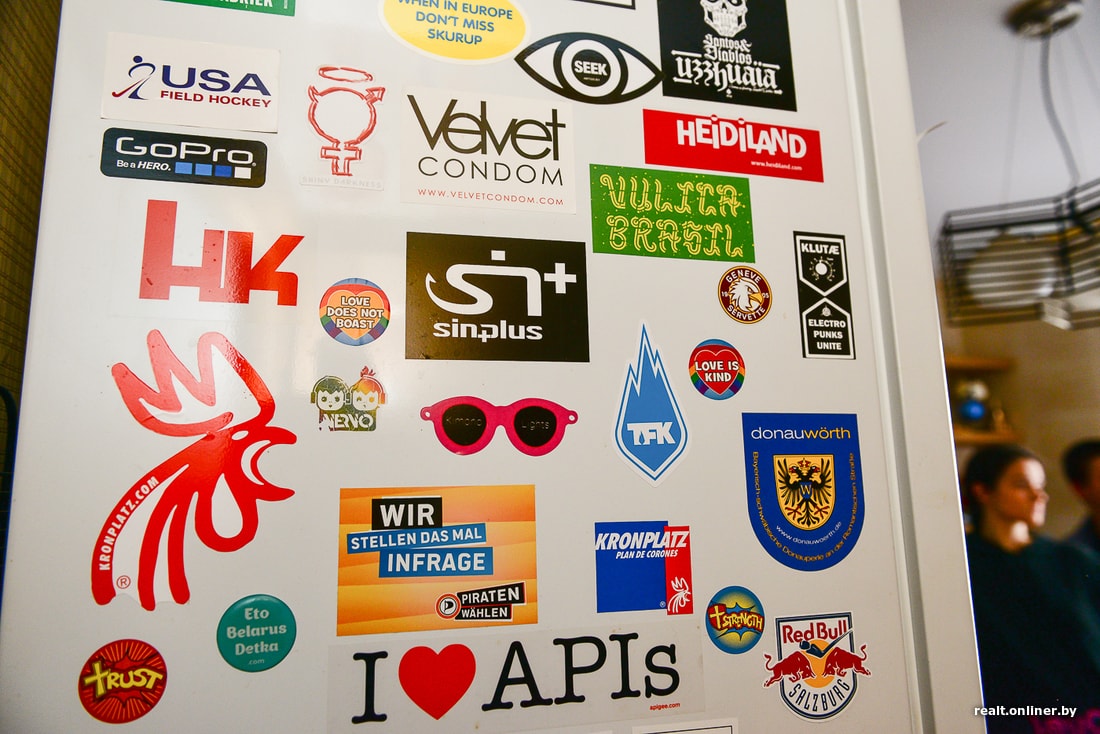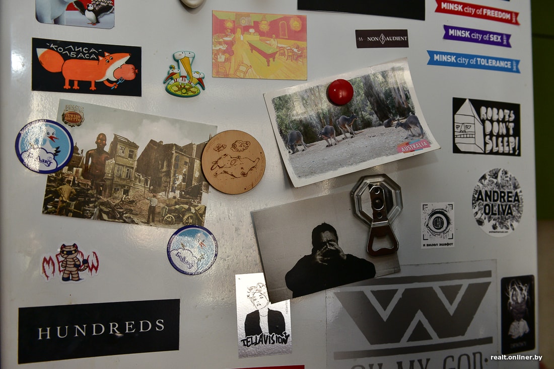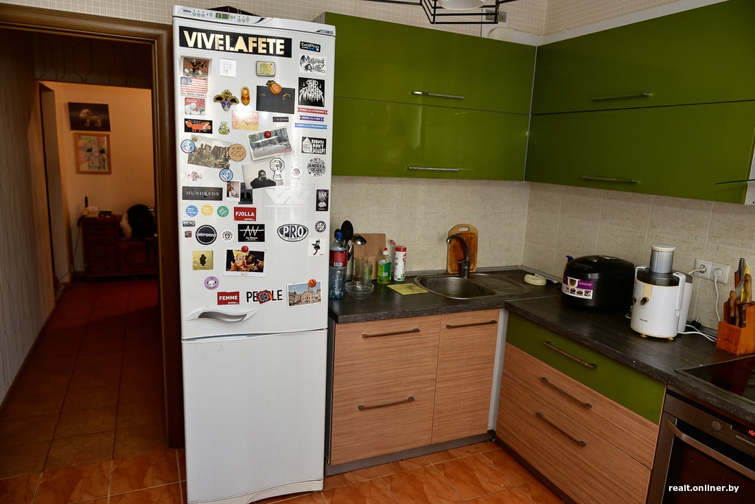 Эта двухкомнатная квартира расположена в одной из ярких панелек микрорайона «Зеленый Бор». Общая площадь — 57 «квадратов», две жилые комнаты (17 и 13 кв. м), кухня (9 метров), раздельный санузел, лоджия и длинный коридор. Много картин, книг (их стопки без пиетета сложены на полу), пластинок, дисков, бюстов вождей. Те артефакты, которые не поместились в квартире, перекочевали в тамбур: например, вымпел с портретом Че Гевары и мотивирующим лозунгом. На тренажере аккуратно сложены одеяла и пледы на случай зимы: кажется, жильцы не очень любят спорт. Об остальном вам предстоит догадаться самостоятельно.