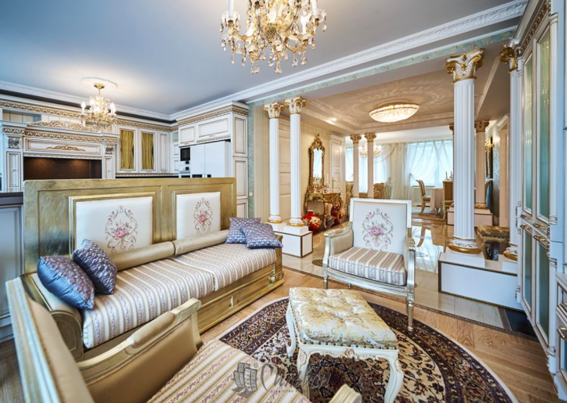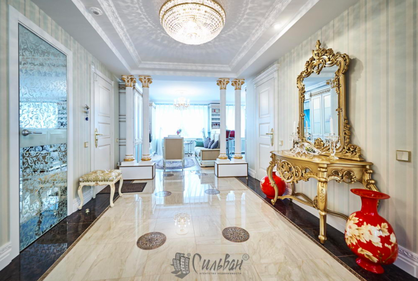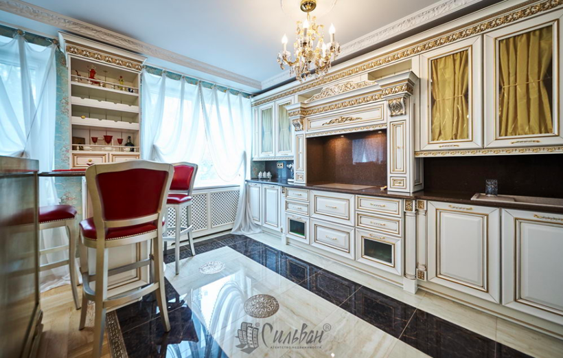 4-комнатная квартира, которую мы предлагаем вашему вниманию, представляет собой изысканное сочетание роскоши и комфорта. В квартире произведен полный капитальный ремонт с заменой всех коммуникаций и конструкций. Установлена система очистки воды RainSoft, в каждой комнате установлены кондиционеры, которые обслуживаются двумя сплит-системами. Для поддержания бесперебойной подачи горячей воды в квартире установлено два бойлера, в санузлах вытяжная вентиляция. Сливные системы оснащены измельчителями отходов. Введены оптоволокно и охранная сигнализация. Вся бытовая техника и оборудование лучших европейских и американских производителей. В отделке квартиры и оформлении интерьера использованы дерево с золотой патиной, бронза, мрамор, хрусталь. Вся мебель и межкомнатные двери — дерево, массив (пр-во Италия.) В санузлах итальянская плитка, керамогранит, мрамор, итальянская сантехника. Освещение — от элитного производителя из Чехии BohemiaIveleCristal (хрусталь, бронза). Одна квартира на этаже. Вид из окон на Александровский сквер», — конкретизирует агент, не давая даже намеков на возможность скидки.