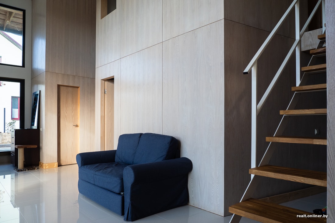— Почти все работы мы с братом делали сами. Сами заливали фундамент, ставили каркас, изготавливали двери, варили лестницы. В итоге на стройку ушло где-то $70 тыс. Если бы не допускал ошибок (изначально утеплил стены 15-сантиметровым слоем минваты), получилось бы еще дешевле. Весной планирую все довести до ума. Доделаю крышу, закончу отделку, обустрою террасы, баню с мастерской в подземной части. Может, и бассейн со временем появится. Тогда проект будет считаться завершенным.