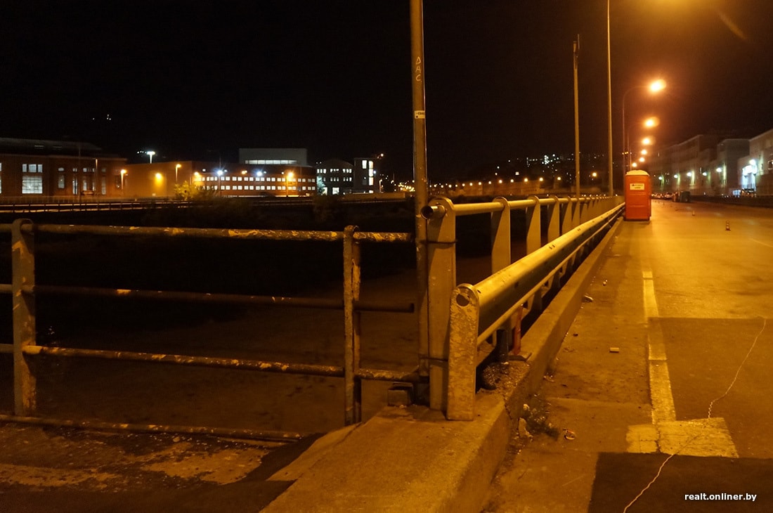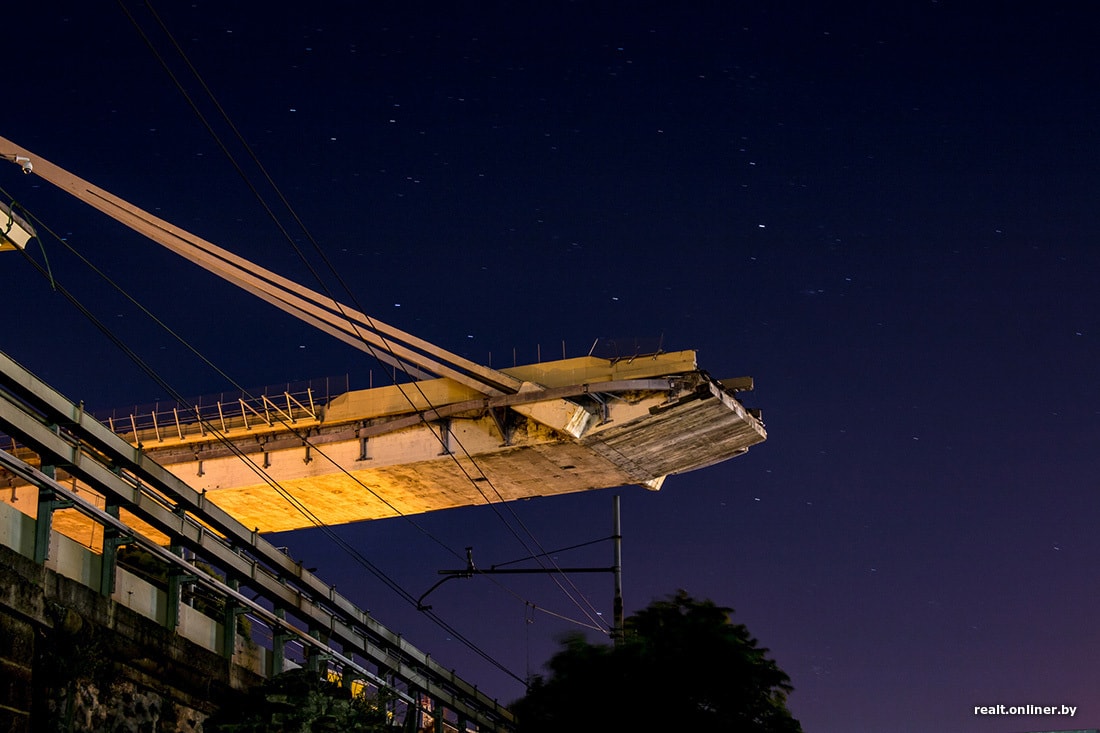 Ночью последствия происшествия выглядят еще более устрашающими, чем на снимках, сделанных в светлое время суток. Массивные плиты смотрят в пропасть. Кусок платформы висит на балке и, кажется, лишь чудом еще не обвалился. Вдали виднеется другая часть моста, ведущая в пустоту. Посередине, как раз на набережной, где мы оказались, груда сломанных бетонных блоков, которые еще пару месяцев назад служили опорой многотонной конструкции. Появляется странное ощущение: вблизи обломки выглядят такими огромными и внушительными, а 14 августа сложились, как картонка на ветру.