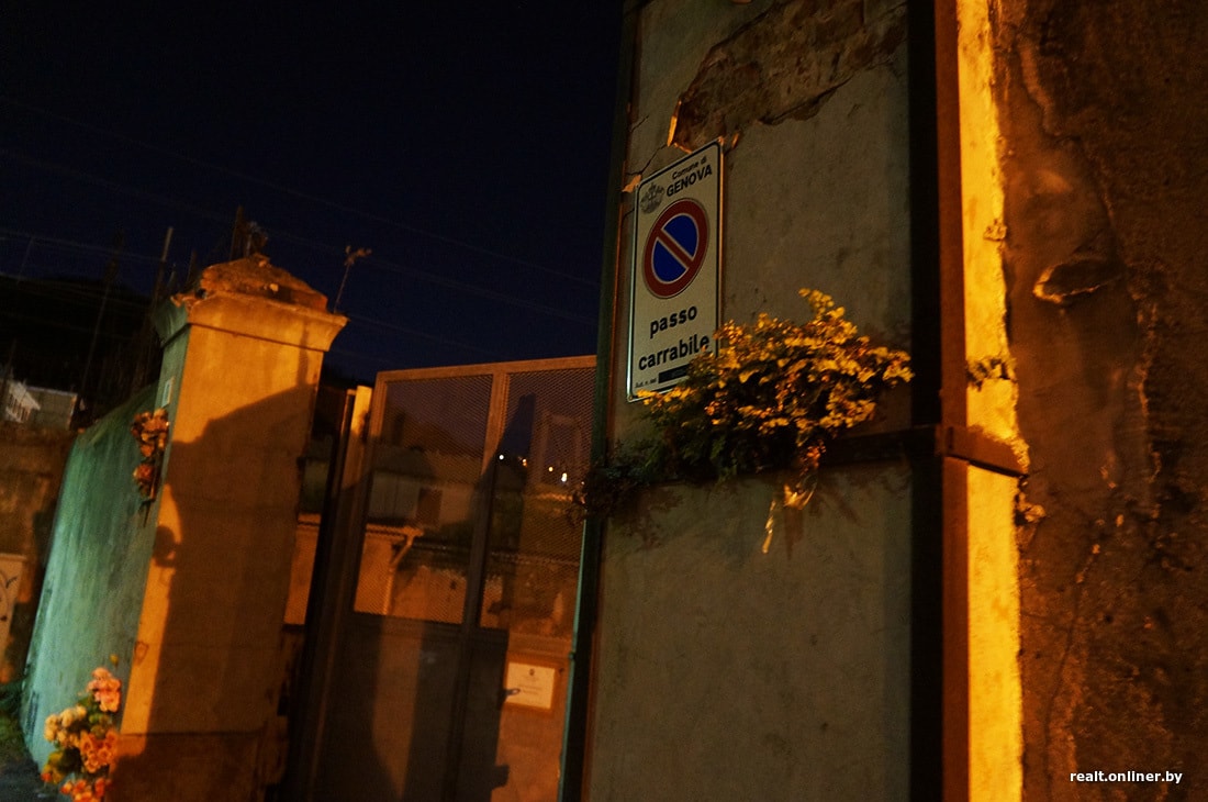 Да, в случае с мостом через Припять совсем другая ситуация и другие расстояния. Автомобилистам рекомендовали объезжать проблемное место за 240 километров. Однако в сравнении с трагическими последствиями обвала в Генуе логистические потери можно назвать небольшой ценой. Здесь, в паре десятков метров от дворика, через который пробираемся мы с Селиной, погибли 43 человека. Кто-то ехал в машине по мосту и упал с 50-метровой высоты, кто-то оказался погребен в домах внизу, под завалами.