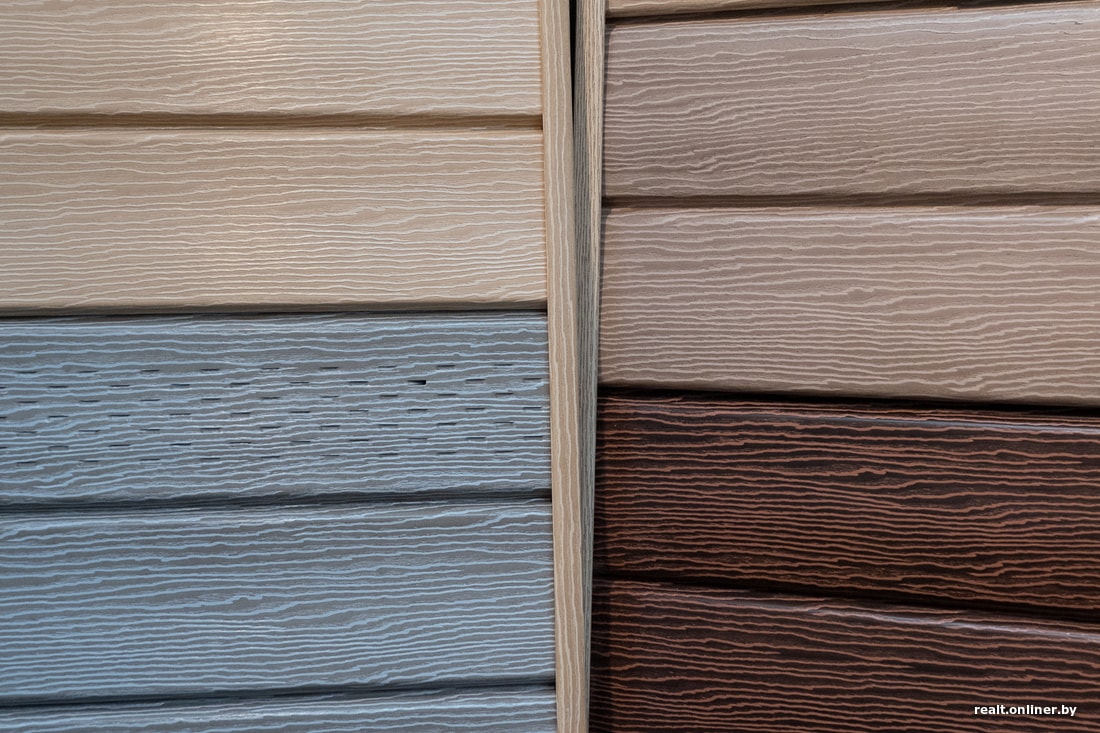 Представлены на выставке и различные отделочные материалы для фасадов и интерьеров. Одна из компаний демонстрирует образцы винилового сайдинга. Покрытие имитирует фактуру натурального камня и различных пород древесины. Виниловый сайдинг не растрескивается, не рассыхается, не гниет и не представляет никакого интереса для насекомых, в отличие от материалов из древесины. Но со временем поверхность выцветает на солнце.