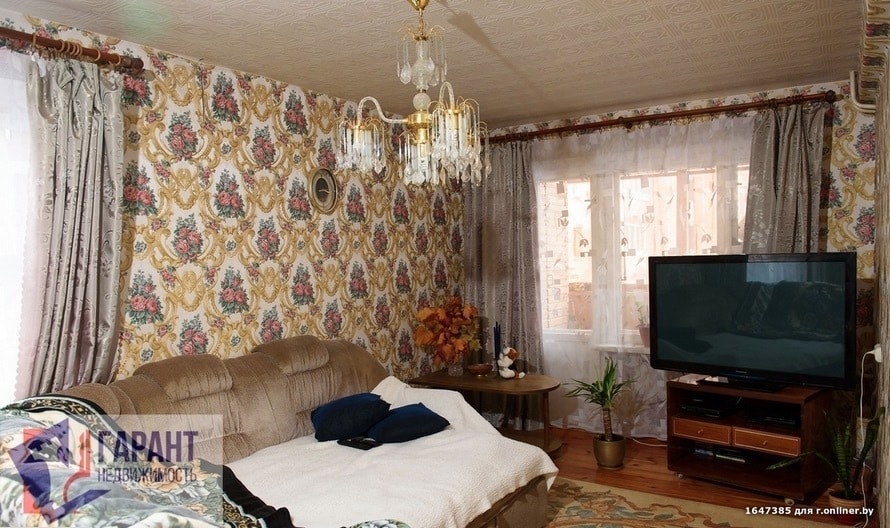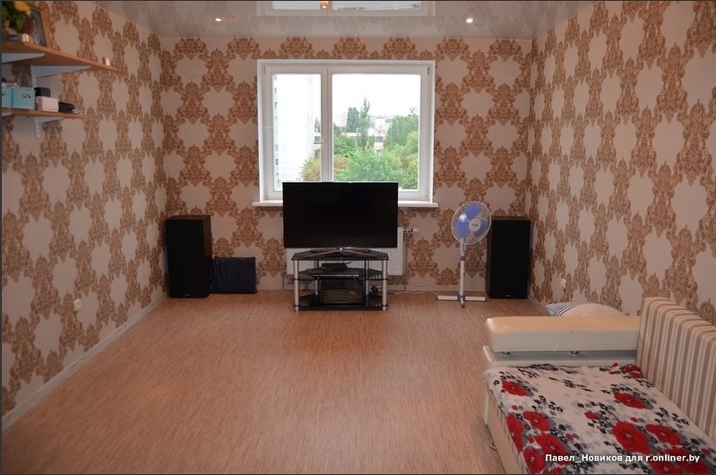 Часто повторяющийся геометрический рисунок, легкий блеск — и вот при долгом просмотре голова уже начинает кружиться. Эти обои в четырехкомнатной квартире на Гашкевича явно клеили достаточно давно. Пришло время уступить их место чему-то более спокойному.