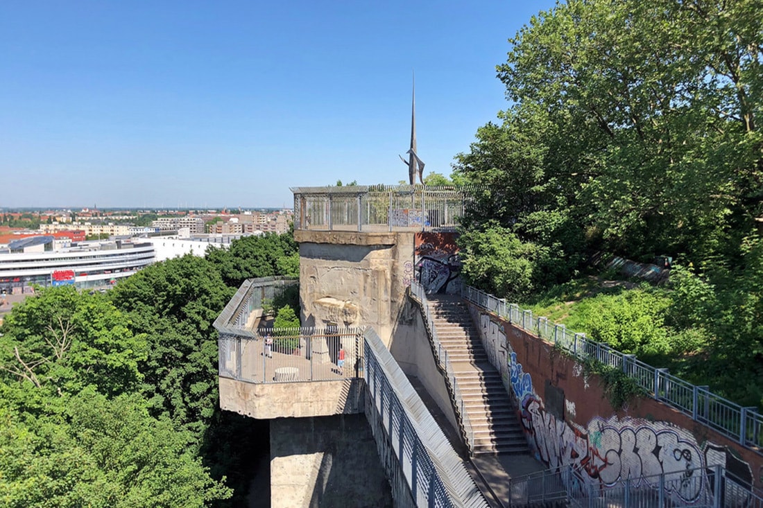 Проект этих противовоздушных крепостей, известных сейчас как флактурмы (зенитные башни), был разработан профессором Фридрихом Таммсом из Технического университета Берлина, другом и соратником главного нацистского придворного архитектора Альберта Шпеера. Строительство осуществлялось «Организацией Тодта», главным строительным концерном Третьего рейха, и, несмотря на размеры и ресурсоемкость объекта, шло достаточно быстро: защита Берлина от воздушных атак была поставлена в высокий приоритет. Первый комплекс в Тиргартене ввели в эксплуатацию всего за семь месяцев, к апрелю 1941-го. В октябре был готов второй, а в апреле 1942 года — и третий. Намеченный треугольник флактурмов, закрывший берлинское небо, был укомплектован.