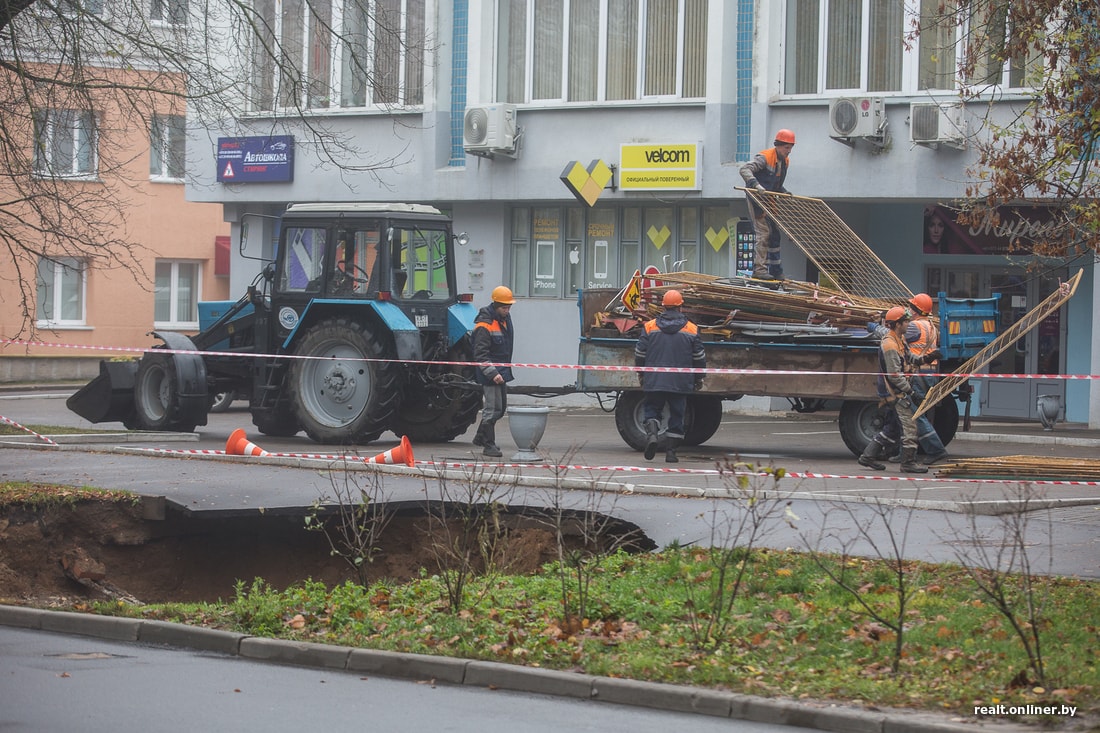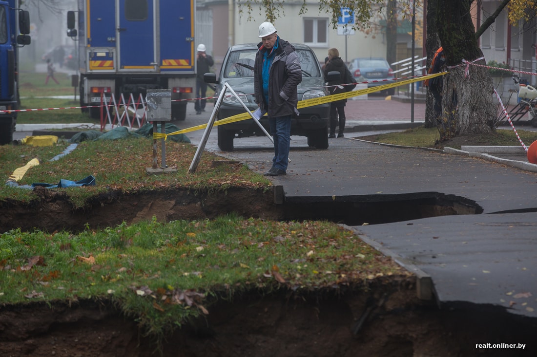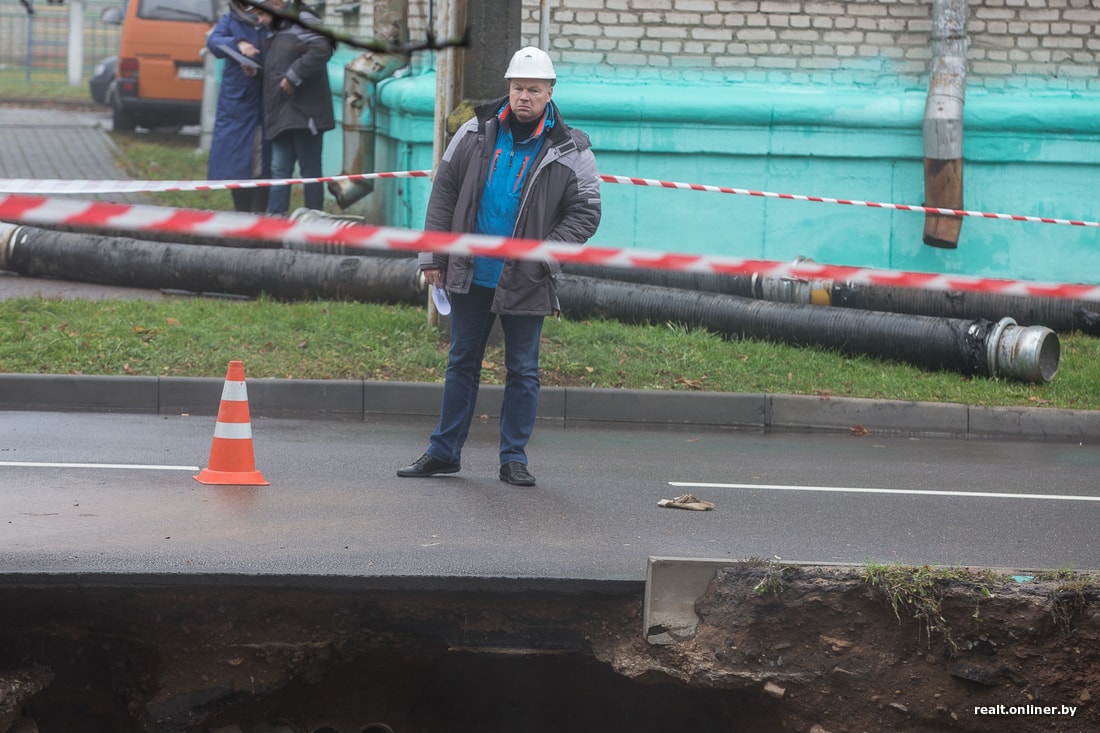 «Минскводоканал» тоже сообщает о повреждении коллектора на улице Фабричной.