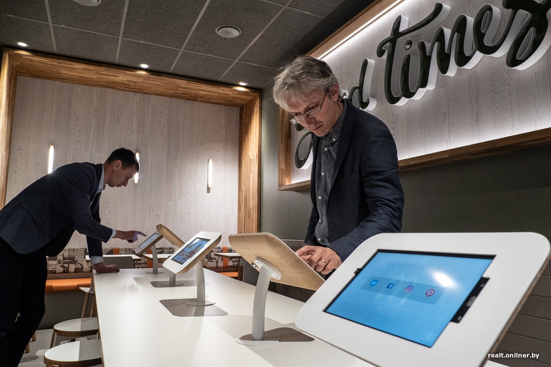 Это один из топовых для Беларуси «МакДональдсов», который соединил в себе все самое новое, инновационное и технологичное. В новом ресторане работает опция обслуживания за столиками, а заказ можно оформить как традиционным способом — через кассира, так и самостоятельно с помощью киосков самообслуживания, что существенно ускоряет время его обработки и выдачи. Само собой, гостям будет предоставляться бесплатный Wi-Fi.