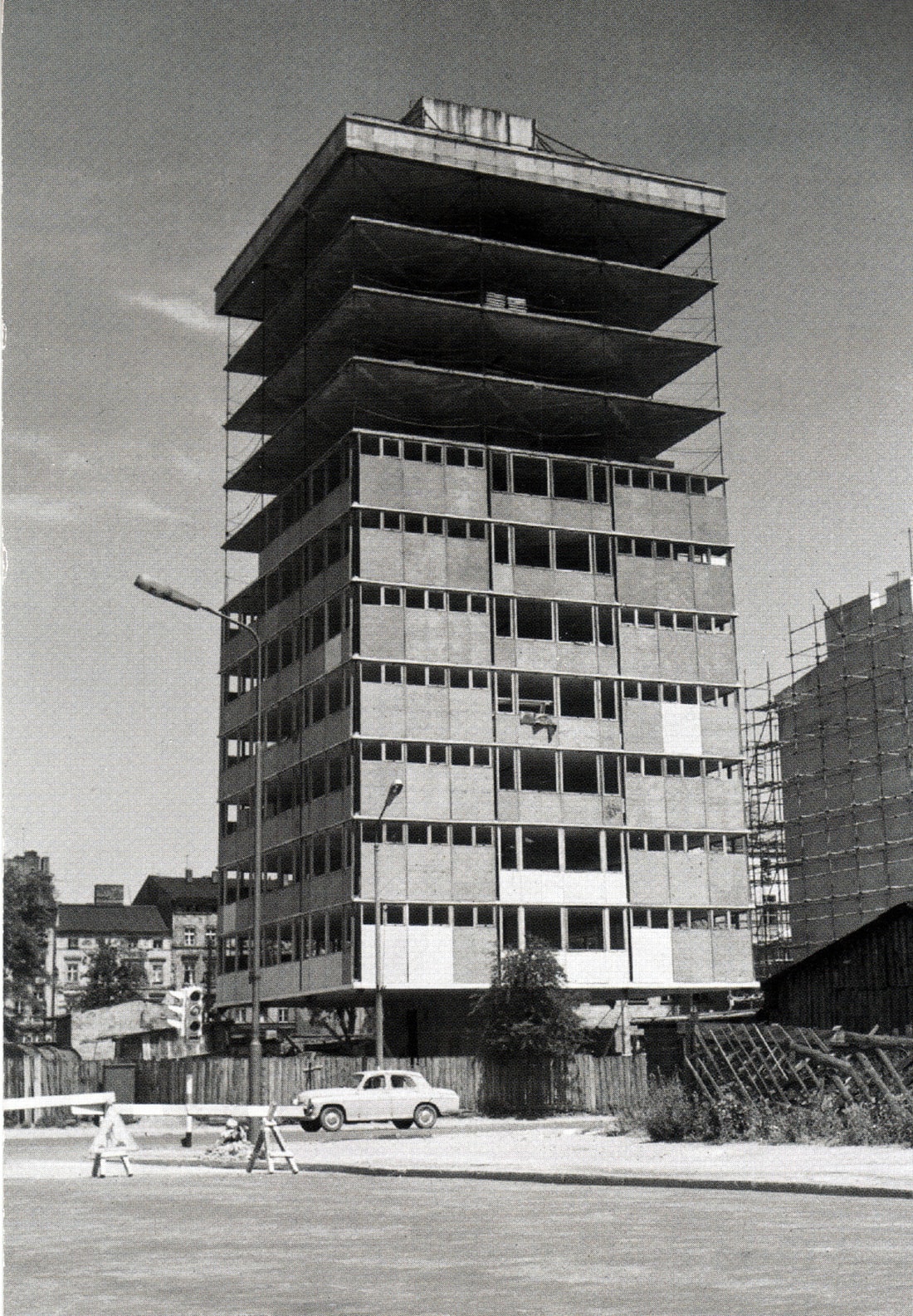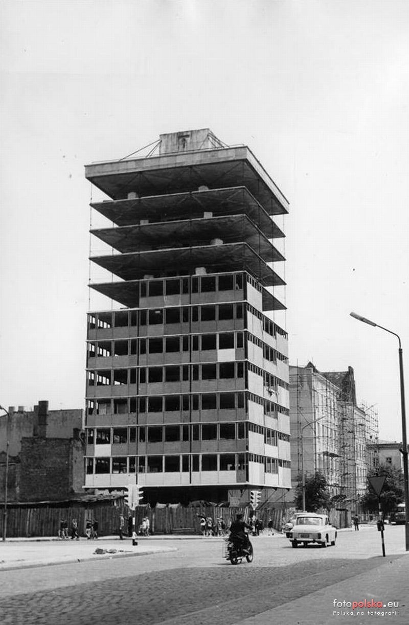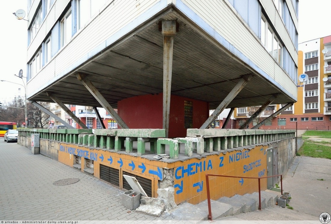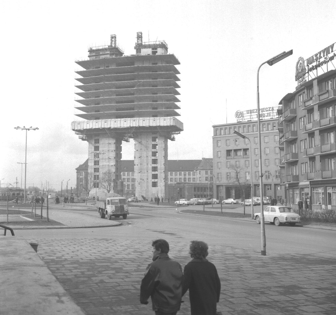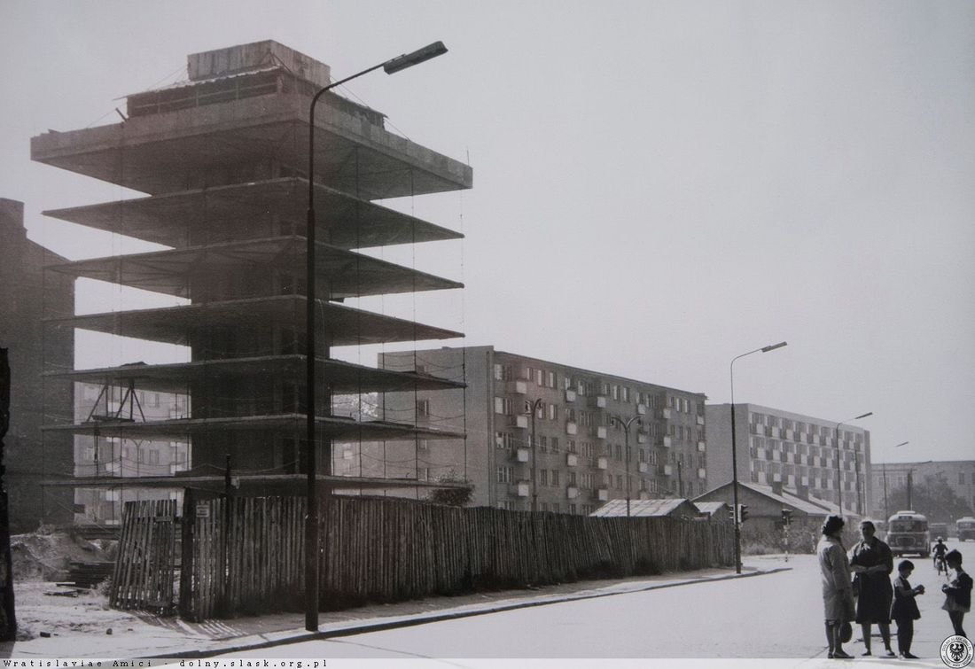 Если для гданьского «Зеленяка» была использована купленная в Швеции технология, то другое местное здание — «Виселец» во Вроцлаве — было уже целиком и полностью разработкой польских архитекторов. Эту жилую 11-этажку построили в 1967 году, и на то время это был ультрасовременный объект. У башни в принципе не было первого уровня — входная группа располагалась прямо в бетонном сердечнике. Он же принимал на себя и всю нагрузку от этажей, подвешенных к нему на стальных тросах (отсюда народное прозвище «Виселец»). Прозрачное ленточное остекление завершало эффектный образ, создававший впечатление парения в воздухе. Высотка была признана лучшим польским зданием 1967 года, но, к сожалению, как это обычно бывает, авторов подвело качество строительных материалов и собственно выполнения работ. При сильных ветрах висящий на тросах «Виселец» раскачивало, в стенах появлялись трещины, его вынужденно отселили, а при последующей модернизации «укрепили» так, что задуманный художественный образ полностью потерялся.