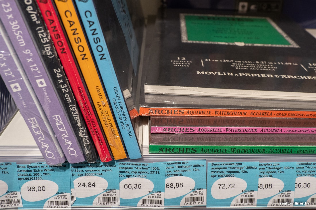 Главная новость, безусловно, «приезд на ПМЖ» в столицу продукции перечисленных выше производителей. По словам продавцов, для художников краски от голландцев и бумага от французов — гораздо больше, чем Zara для модников. К слову, профессиональная бумага — удовольствие недешевое, ее цена может доходить до 100 рублей за 20 листов. Творческие люди оценят и то, что впервые в офлайн-торговле появился большой выбор уникальной бумаги из хлопка от топовых производителей — можно посмотреть, потрогать и в мыслях примерить свое произведение на лист.