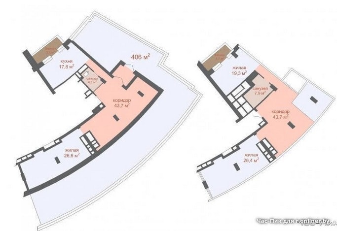 Самая дорогая квартира, имеющая лишь перегородки и штукатурку на стенах, оценена ни много ни мало в $850 000. Расположена она в известном доме на проспекте Независимости, 95а, — прямо напротив парка Челюскинцев. 425-метровый пентхаус с потолками высотой три метра делится на шесть жилых комнат (самая маленькая имеет площадь 17 «квадратов», а самая большая — 65,6), несколько санузлов, множество подсобных помещений. Любопытно, что малоквартирный дом был построен еще в 2009 году, но до сих пор не все метры обрели своих владельцев.