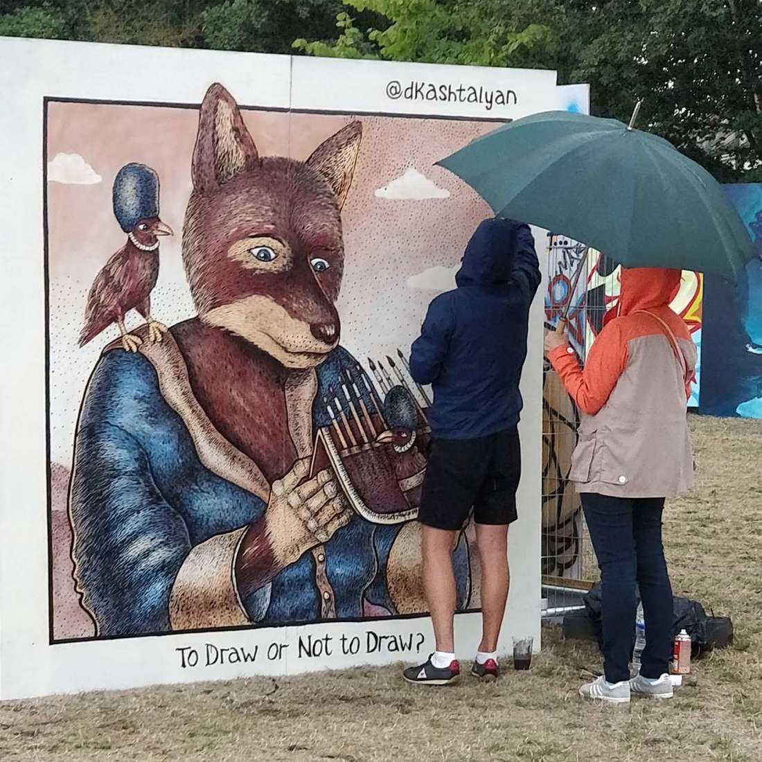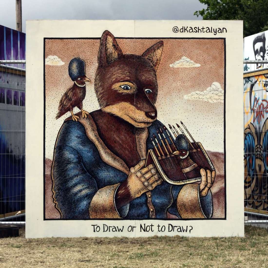 Когда для фестиваля Vulica Brasil в Минск выписывают художников из Южной Америки и предлагают нашим соотечественникам скинуться на билет, складывается впечатление, что в Беларуси совсем нет своих граффитистов. Оказывается, это не миграция, а целый круговорот художников в природе. Недавно минчанин Дмитрий Каштальян создал в Вене фреску, посвященную творчеству Питера Брейгеля (старшего) — получилось стильно, мрачно и впечатляюще. Выходит, что мастера у нас есть, только на минских стенах они в основном не рисуют. Мы спросили у Дмитрия, можно ли найти его работы в Минске, в каких столичных фестивалях он участвовал, и получили очень неожиданный ответ.