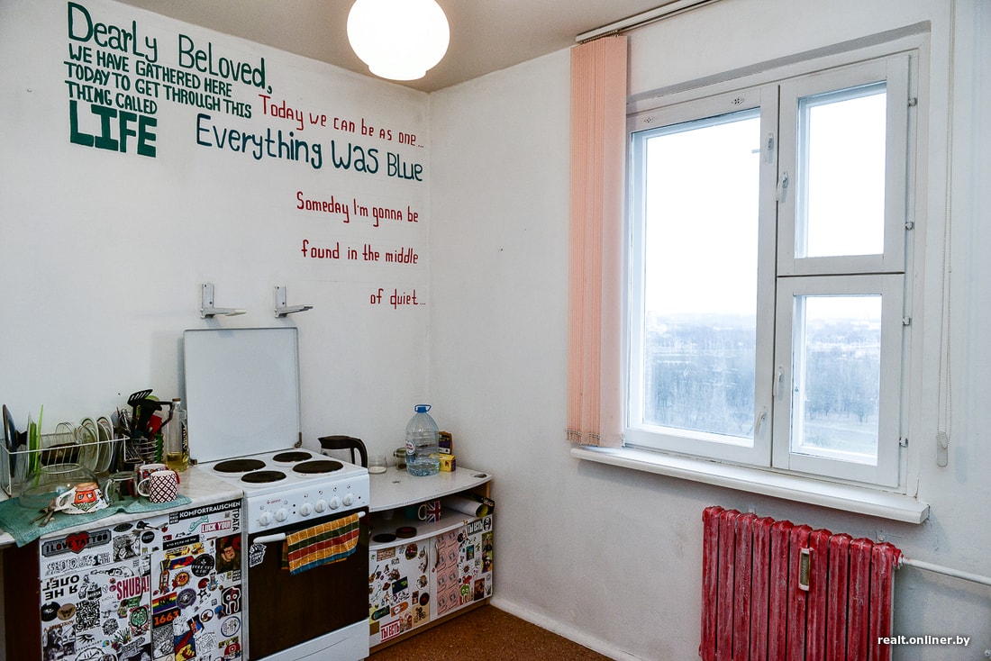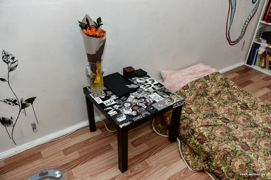 Знакомьтесь: это Даша, ей 23 года, она работает барменом. У Даши 10 татуировок, и это, подозреваем, не конец. Вместе с соседкой — студенткой медицинского университета, которая приехала в Минск из Дубая, — она снимает эту квартиру за $280, за «коммуналку» платит хозяин. С новоселья прошло всего полгода, но девушки уже успели изменить жилье до неузнаваемости.