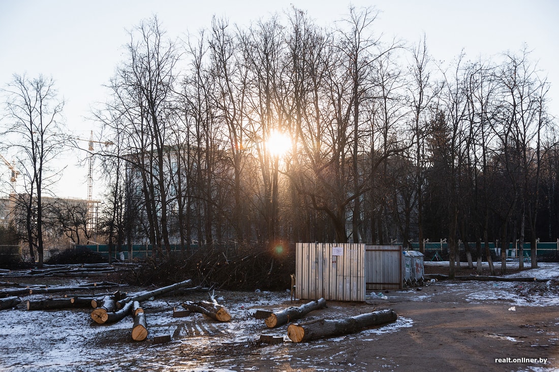 Жильцы не дают осуществлять снос деревьев, — рассказали в ОАО «Стройтрест №1», который выступит генеральным подрядчиком строительства. — Они выходят, обнимают деревья и препятствуют сносу. Поэтому мы пока работы приостановили. Продолжим их, когда заказчик передаст нам площадку согласно договору. Пока что это не наша территория, так что если жильцы не дают нам производить работы, то это не наш вопрос. Кроме того, до начала строительства там нужно сделать вынос электрических сетей, а электрокабель при отрицательных температурах укладывать нельзя. Поэтому сроки начала строительства будут зависеть от погодных условий. Пока не переложен кабель, мы не можем приступить к рытью котлована.