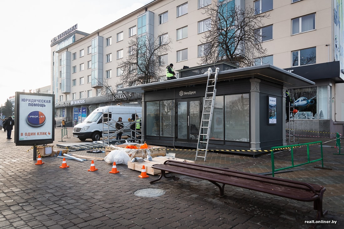 К своему 100-летию РУП «Белсоюзпечать» разработало концепцию умного павильона нового формата, в котором можно подзарядить гаджет, вызвать такси и экстренные службы, заказать трансферы в аэропорт и за пределы города. Сегодня первый такой павильон уже устанавливают в центре Минска, возле бизнес-центра «Александровский» на проспекте Победителей. Как сообщается в официальном Twitter-аккаунте Министерства информации, открытие павильона запланировано на 12 декабря.