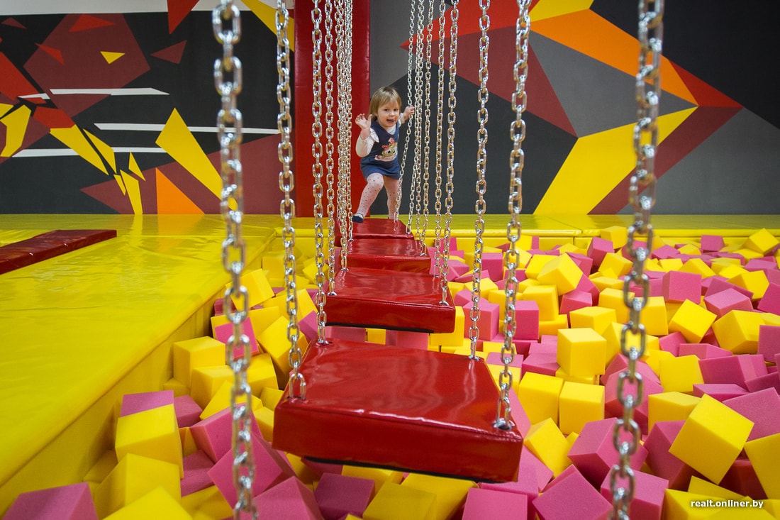 — Площадь позволила «развести» маленьких детей и взрослых, — объясняет соучредитель Flash Park Валерий Поклад. — Причем детей мы постарались максимально заинтересовать: есть зона для совсем малышей, которым нравятся горки и сухие бассейны, и для тех, кто постарше, — лабиринт, ниндзя-парк, свои уменьшенные по размерам батуты (выдерживают вес до 65 килограммов), мягкая яма со слэклайном. Все аттракционы соединены между собой, так что ребенок может свободно перемещаться от вулкана до мягкой ямы, не выходя за пределы детской зоны и не пересекаясь со взрослыми, что обеспечивает безопасность отдыха наших гостей.