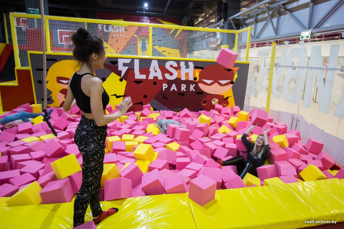 Первые батутные арены, доступные абсолютно всем жителям города, стали появляться в Минске около двух лет назад. Поначалу возможность прыгать в любое время дня казалась странной, но потом люди поняли, что к чему, и вошли во вкус. Заведений этой направленности становилось все больше, вариации отдыха расширялись — самых выносливых радовали союз арены и ниндзя-парка, худеющие (и не только) оценили групповые занятия на батутах, многие стали праздновать в ярких стенах дни рождения. Процесс развития батутной сферы продолжается: сегодня начинает работу в полную силу самый большой батутный центр столицы — Flash Park в Diamond City.