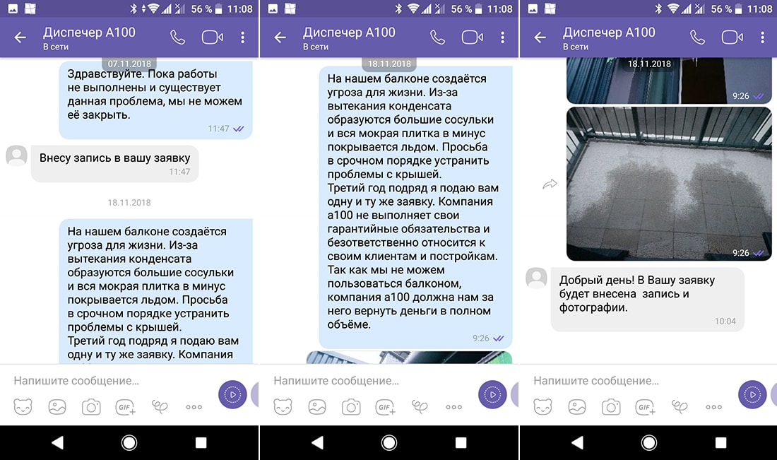 Неудивительно, что уже следующей осенью и зимой история с намоканием стены снаружи, а также появлением сосулек повторилась. Дряхлеть продолжил и балкон. Ирина снова стала стучаться в чаты обслуживающей организации. Исправить то, что докучало все холодные месяцы, обещали до конца мая. Но, видимо, что-то пошло не так, и сезон осень — зима 2018/2019 начался с привычного.