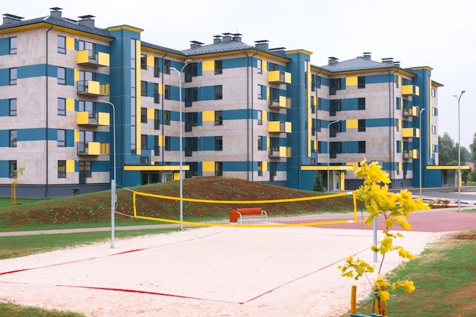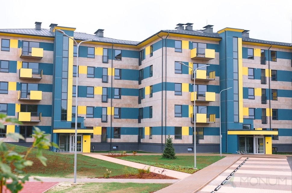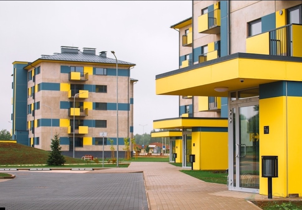 Руководство города провело открытый конкурс на право проектирования и строительства первых в стране арендных домов. Победителем стал местный передовик стройотрасли, компания Monum, которая взялась за полтора года выполнить все работы — от бумажных до непосредственно строительных. В итоге точно в срок по адресам Киегелю, 8 и Малу, 1 выросли две панельные (!) пятиэтажки, которые для поддержания праздничного настроения ярко раскрасили.