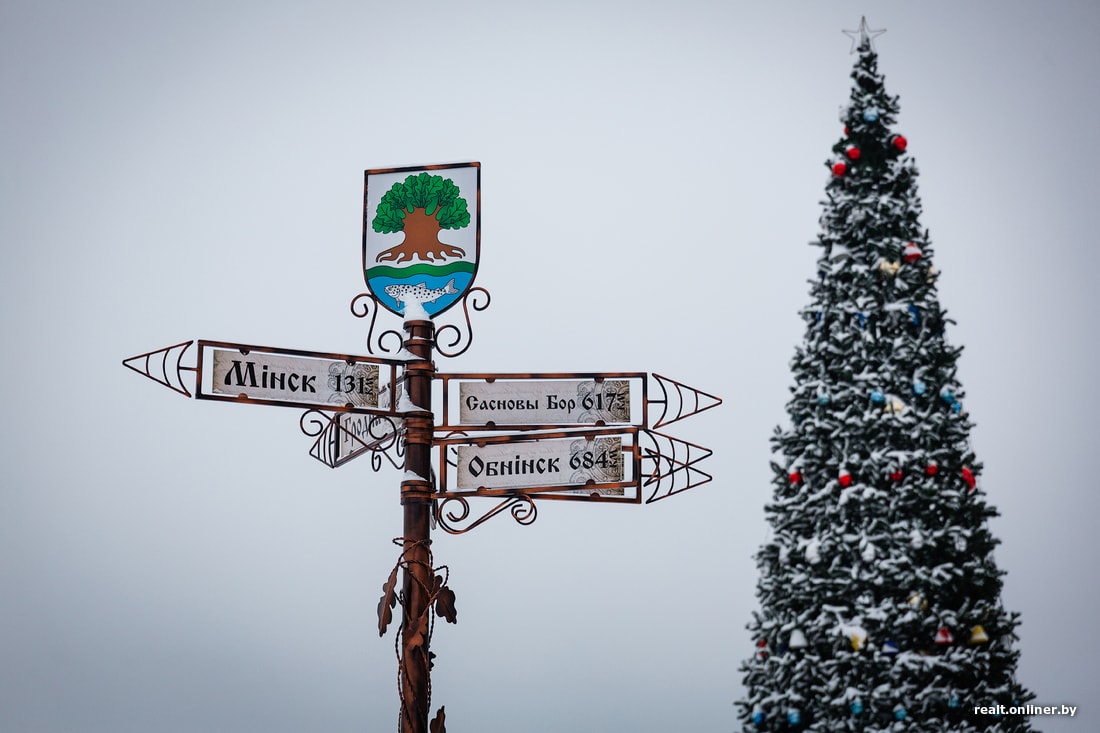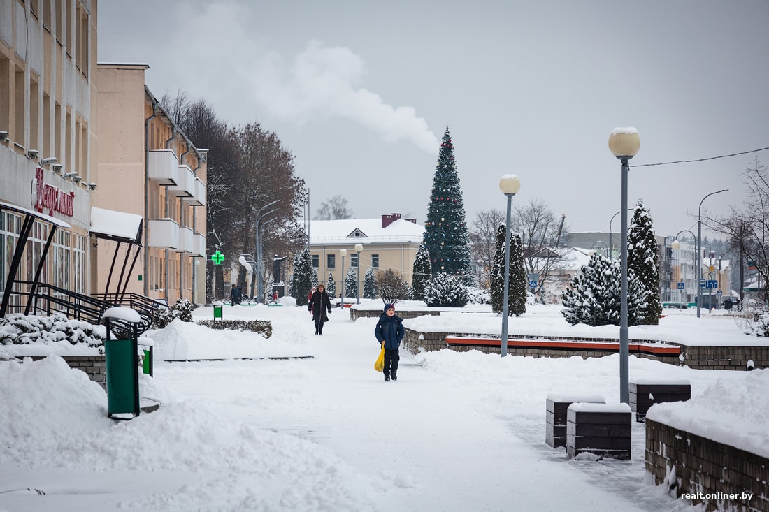 К Новому году площадь украсили только елкой, которая в представлении властей любого белорусского города растет в виде конуса. Хвойные вблизи тоже приняли продиктованный вид идеальных геометрических фигур. Порядок должен быть в любых законах, даже природных.