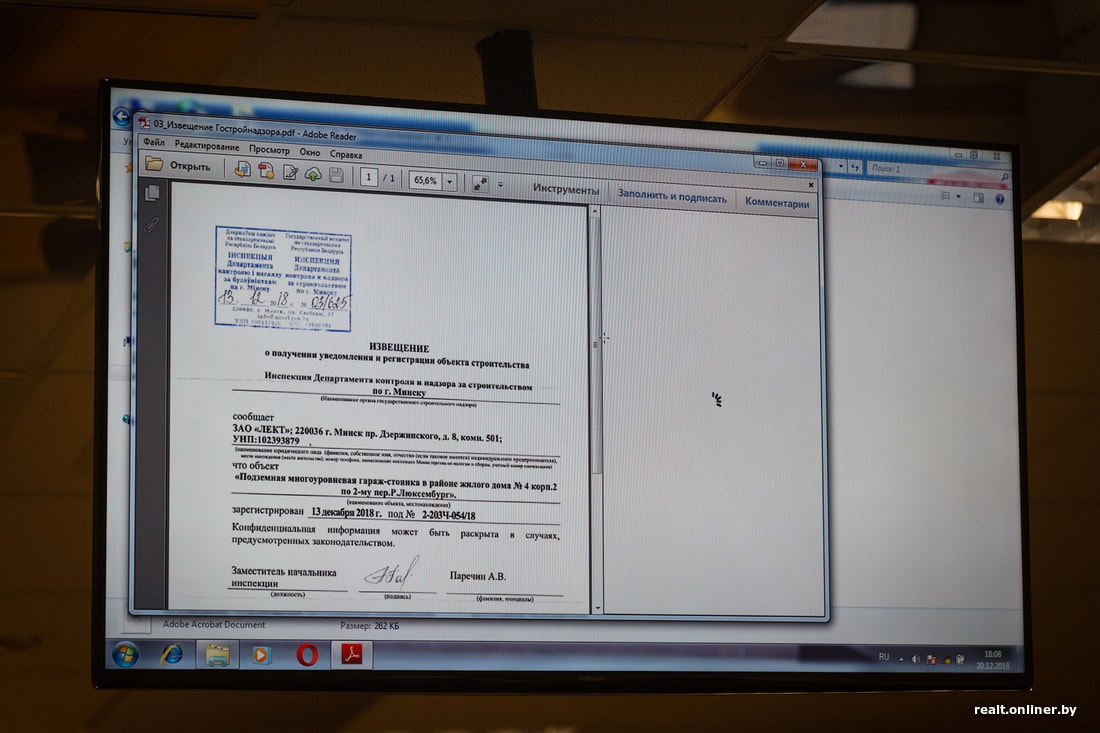 Далее последовало перечисление всех документов, которые необходимы для проведения работ и которые действительно есть у заказчика — все без исключения с положительными визами. Также представитель заказчика уточнил, что городские власти в курсе, одобряют и даже настаивают на скорейшем строительстве паркинга (а также штрафуют за срыв сроков) — договор на его возведение был заключен еще в 2013 году, объект должны были строить параллельно с развязкой первой кольцевой, но так как была задержка со строительством развязки, то и паркинг по срокам подвинули.