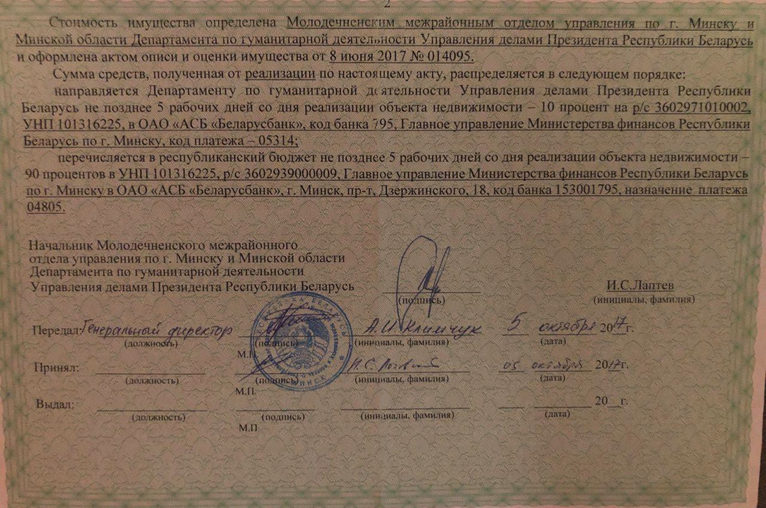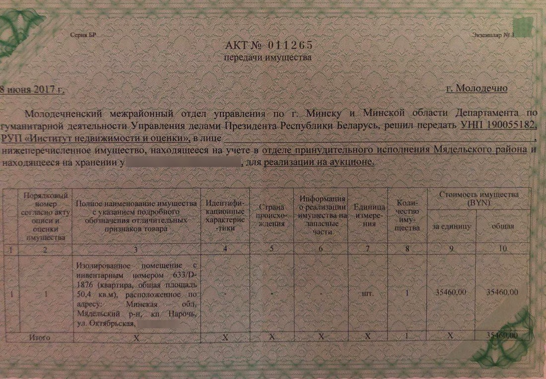 — Основным нормативным правовым актом, регламентирующим работу с конфискованным имуществом, является указ президента Республики Беларусь от 19.02.2016 №63 «О совершенствовании работы с имуществом, изъятым, арестованным или обращенным в доход государства», которым утверждено соответствующее положение. В рассматриваемом случае конфискованное по приговору суда жилое помещение было продано на аукционе герою статьи — его единственному участнику.