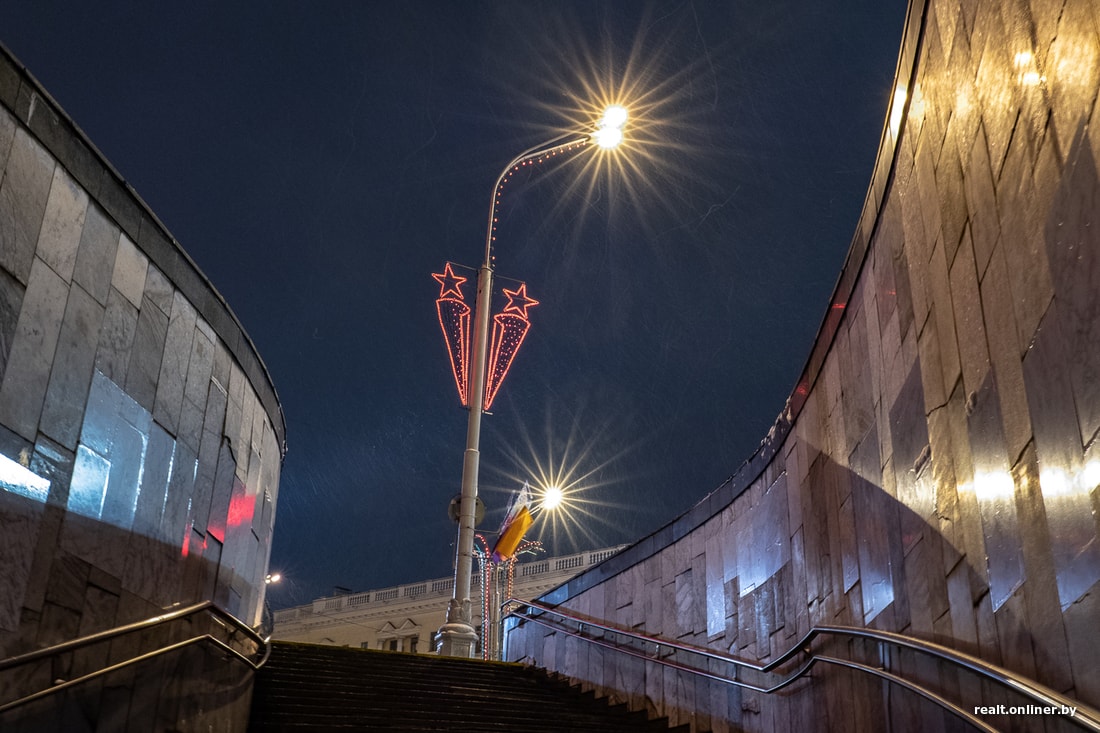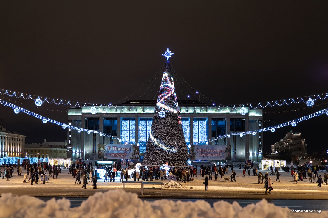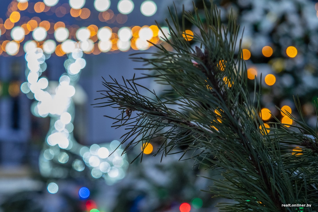 Готовиться к празднику в последний момент Минск уже давно перестал. Сейчас никто не упускает возможность нарядиться в мишуру и гирлянды пораньше. Первыми в новогоднюю гонку включаются магазины, которые уже в начале ноября выкладывают на прилавки всю атрибутику и украшают искусственные елки, вселяя в белорусов трепетное ожидание. Пройдет еще неделя-другая, и огня в общий новогодний настрой добавляет город — в один момент улицы начинают сиять.