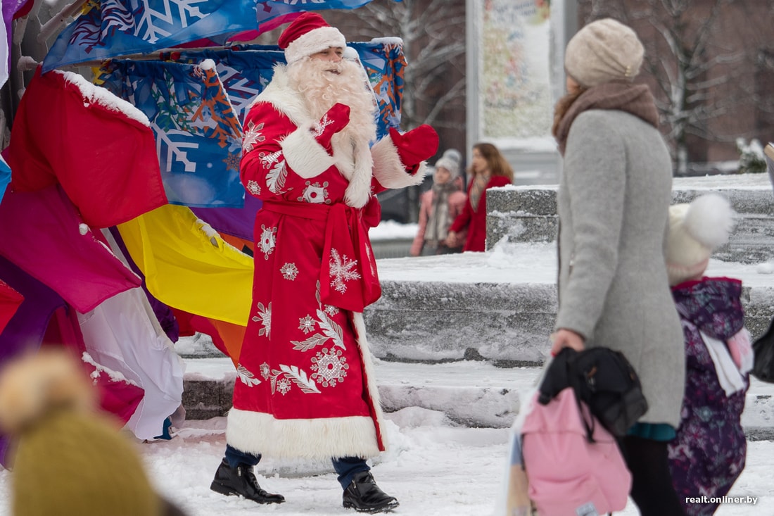 До наступления следующего года осталось три… два… один! И если весь 2018-й еле тянулся, лениво переваливаясь с одного месяца на другой, то сейчас стрелки часов будто сорвались с цепи — бегут, торопятся, перепрыгивают через деления, приближая ночь 31 декабря и оставляя все меньше времени на подготовку к ней. Снежинки, разноцветные огни, участливые улыбки — все это можно увидеть вокруг себя прямо сейчас, если, конечно, оторваться от дивана и выйти на улицы, наполненные праздничным очарованием, заставляющим даже самые усталые сердца биться чаще и надеяться на лучшее. Осознавая неповторимость момента, Onliner прогулялся по центру города и его окрестностям, чтобы запечатлеть счастливые моменты Минска, находящегося в ожидании новогоднего чуда.