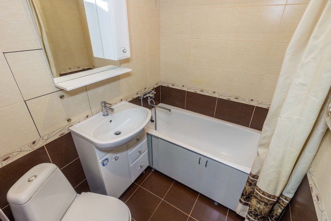 За те же деньги — $37 500 — на продажу выставлена «однушка» в Серебрянке общей площадью 33 кв. м, из которых 17 кв. м — комната. Квартира находится на первом этаже хрущевки на Плеханова, 67. Рядом — зеленая зона и Слепянский канал, в паре остановок — станция метро «Партизанская». А вот жилой квартиру не назовешь: до заселения придется как минимум сделать ремонт в санузле.
