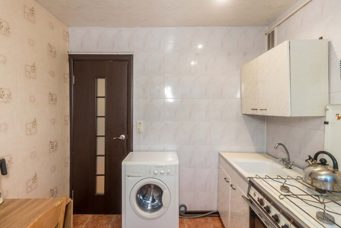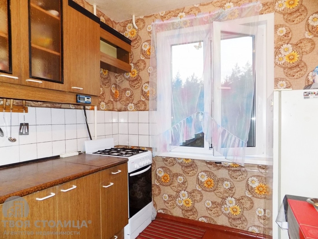 Для тех, кто не готов тратить деньги и время на ремонт, есть «однушка» на Красина, 55 за $38 тыс. Это микрорайон Сосны, который формально относится к Минску, но на деле прилично удален от него. Раз в 10 минут здесь ходит автобус до станции метро «Могилевская». Общая площадь квартиры — 32 кв. м, почти 18 из которых — комната.