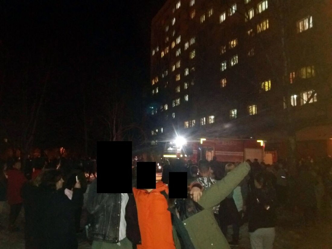 — В этот момент я была на первом этаже у вахтера. Только вернулась с работы. Вахтер что-то кричал, чтобы его не трогали. Что пожар. Я сразу не поняла, что происходит. Лифты работали, извещатель молчал. Начала подниматься по лестнице и увидела, что многие идут в обратном направлении. Вахтеры пытались самостоятельно потушить пожар и звонили в «дежурку». По рассказам одногруппника, который был в этот момент на моем этаже, к ним просто постучались в блок студенты из Туркменистана и сообщили о пожаре. После этого все начали спускаться вниз. Было жуткое задымление. По крайней мере на нашем восьмом этаже. В общем, мы покинули общежитие и стояли внизу минут 30—40. Потом сами зашли внутрь. Потому что никто ничего снова не говорил. На этаже были открыты окна, по этажам ходил пожарный. Дым все еще не рассеялся.