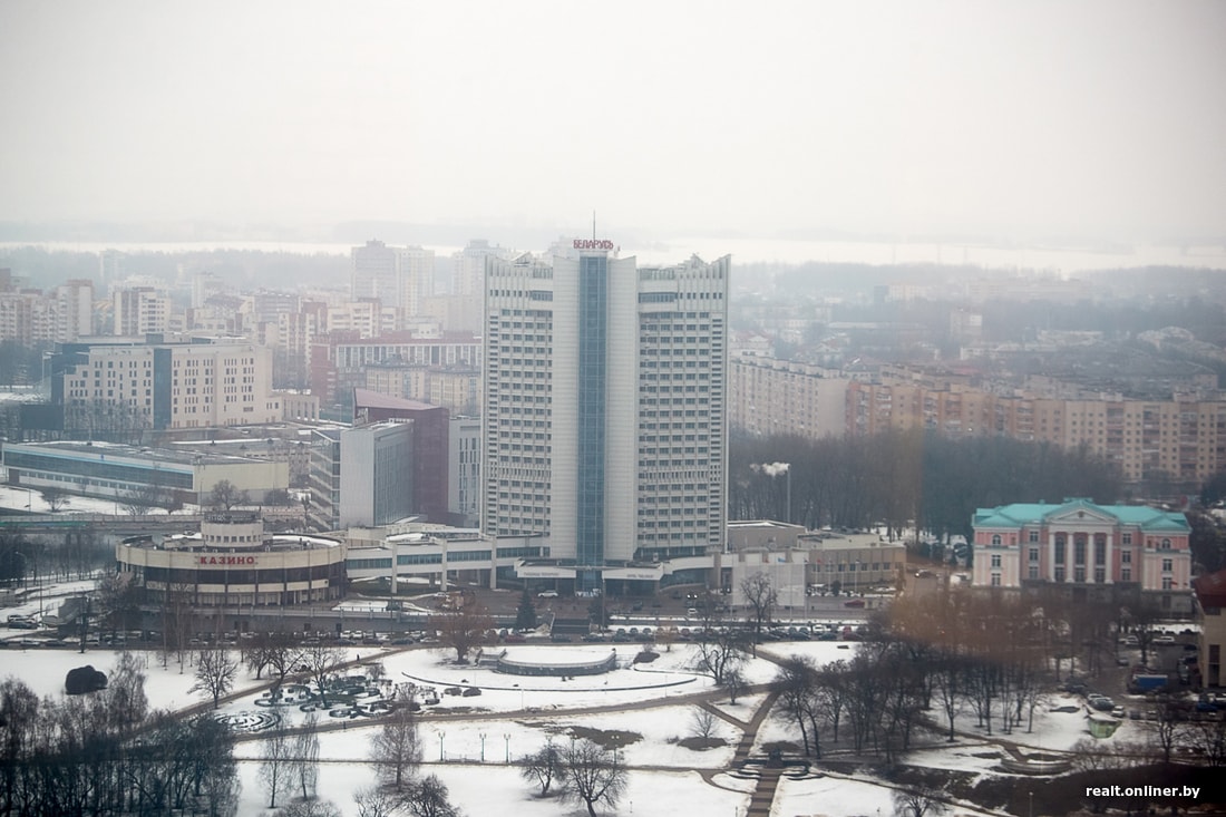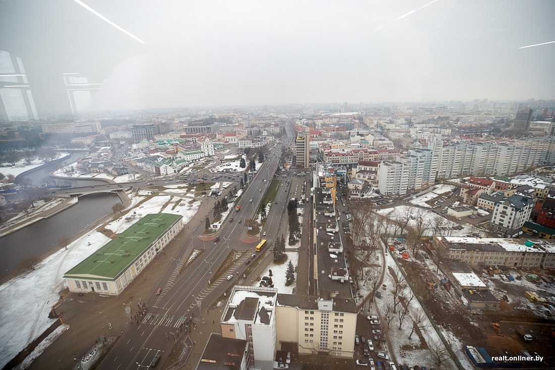 Остекление от пола до потолка дает практически панорамный обзор Минска с высоты более 100 метров. Без сомнения, это самый высокий офис города.