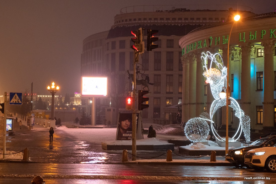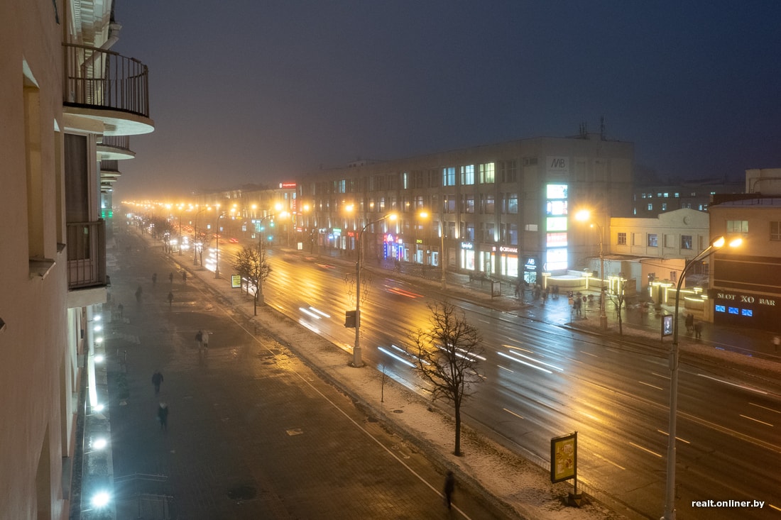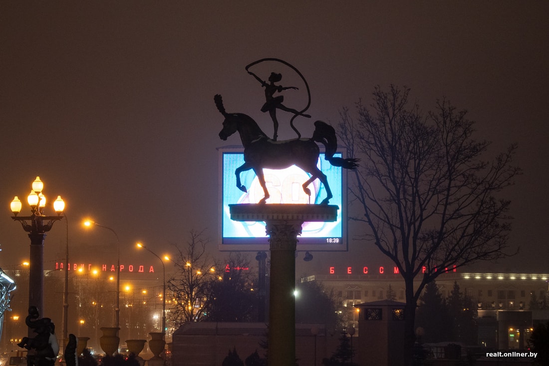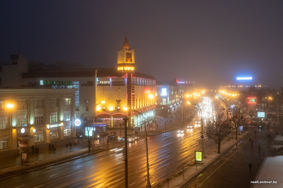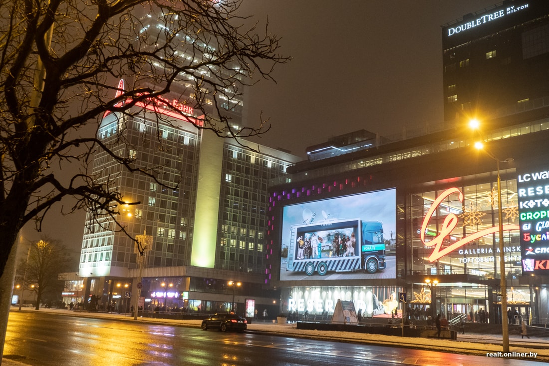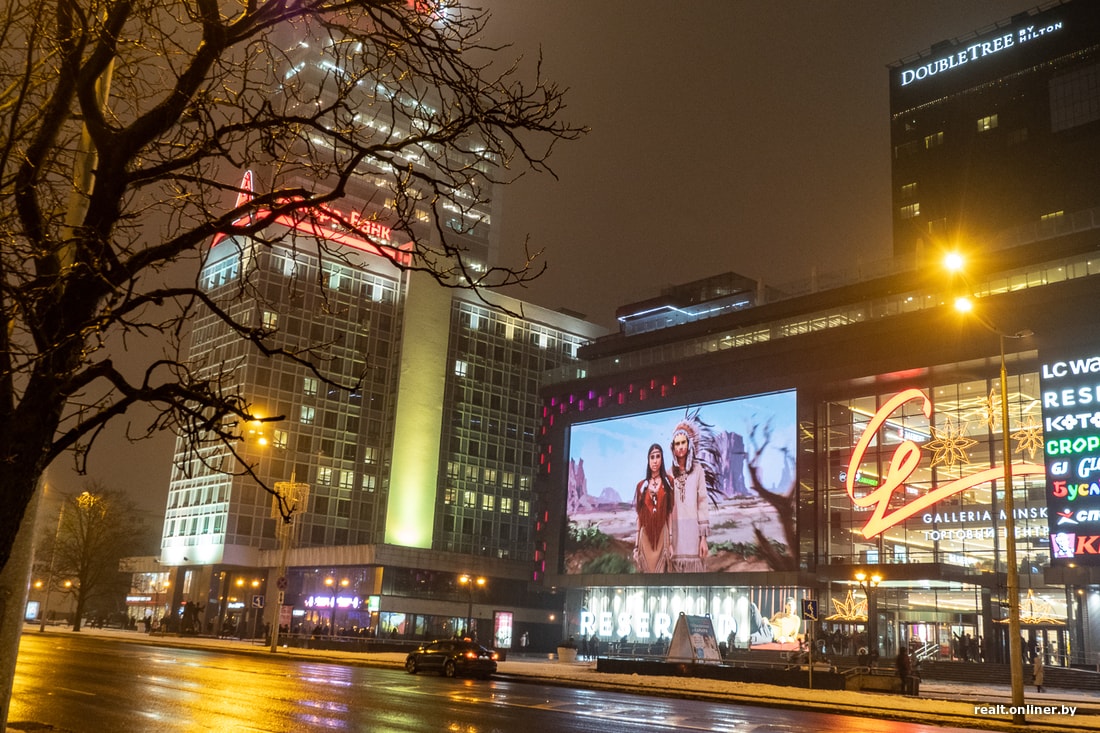 Если посмотреть из окна Ольги на проспект Независимости, то светом и огнями будет залито все. Но внимание, безусловно, притягивает экран. Посмотришь на ролик несколько раз подряд — начинают болеть глаза: все-таки ярко.