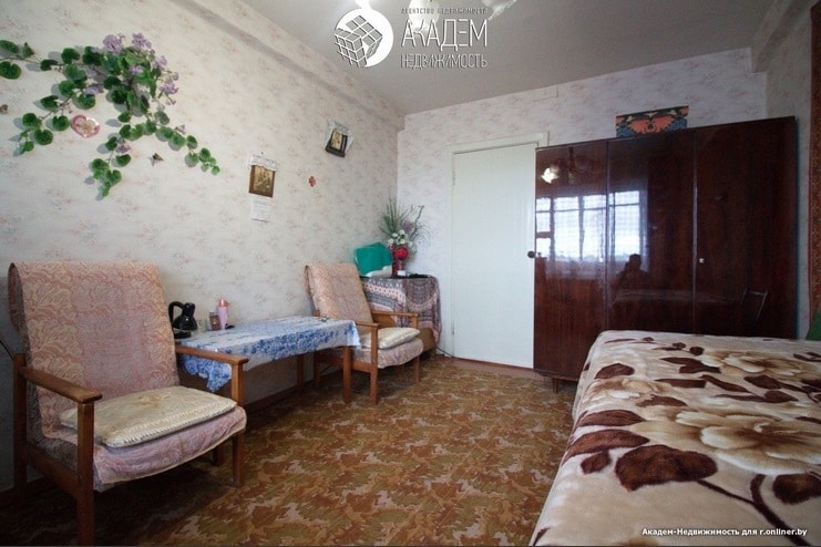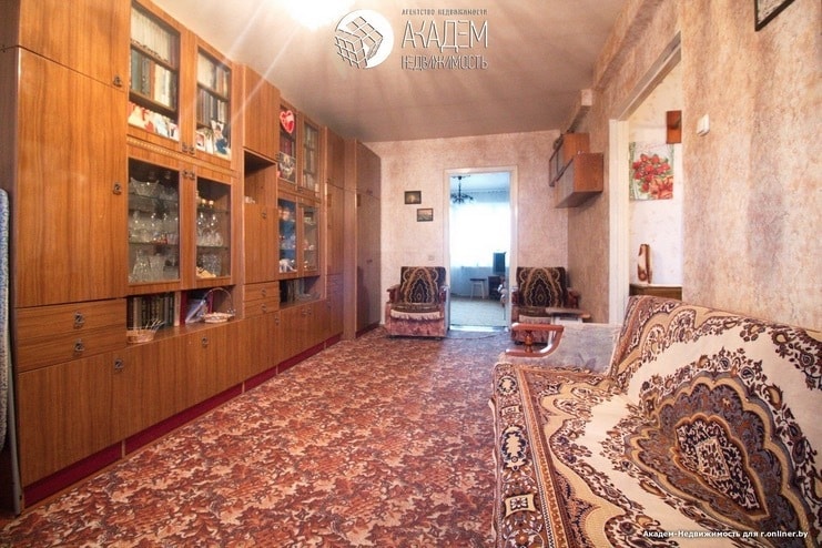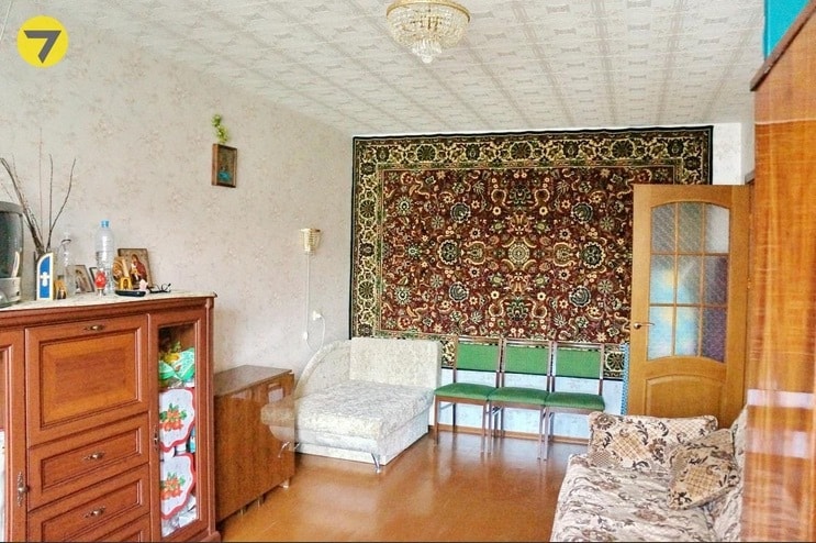 Один из самых свежих объектов, выставленных на продажу посредством сервиса «Дома и квартиры» Onliner, находится на улице Воронянского. На предпоследнем этаже пятиэтажки расположено настоящее сокровище для киношников. Здесь почти все как двадцать-тридцать лет назад в любой приличной семье. Несмотря на годы за плечами (дом построен в 1972-м), в квартире очень чисто и аккуратно. В общем, впечатление приятное.