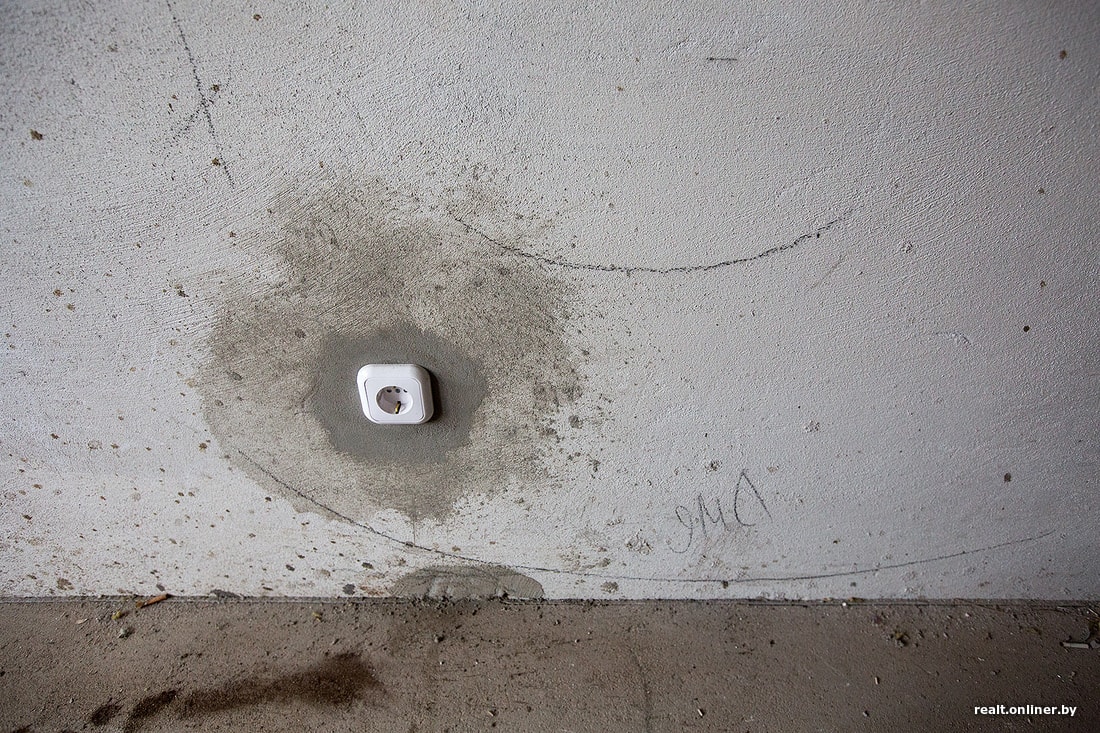Квартира Марины оказалась особенной: к перекрытию (которое для нее является потолком) крепился строительный кран. Вроде бы банальная вещь, ни одна высотная стройка без этого не обходится. После завершения всех работ место стыковки (дырочки с шагом сантиметров 20) стандартно заделывается цементным раствором и становится практически незаметным. Но не в нашем случае: место, где крепилась «нога», оказалось зашито почему-то листом металла. А уже поверх него строители приклеили сетку и наляпали раствора. Удивительное решение.