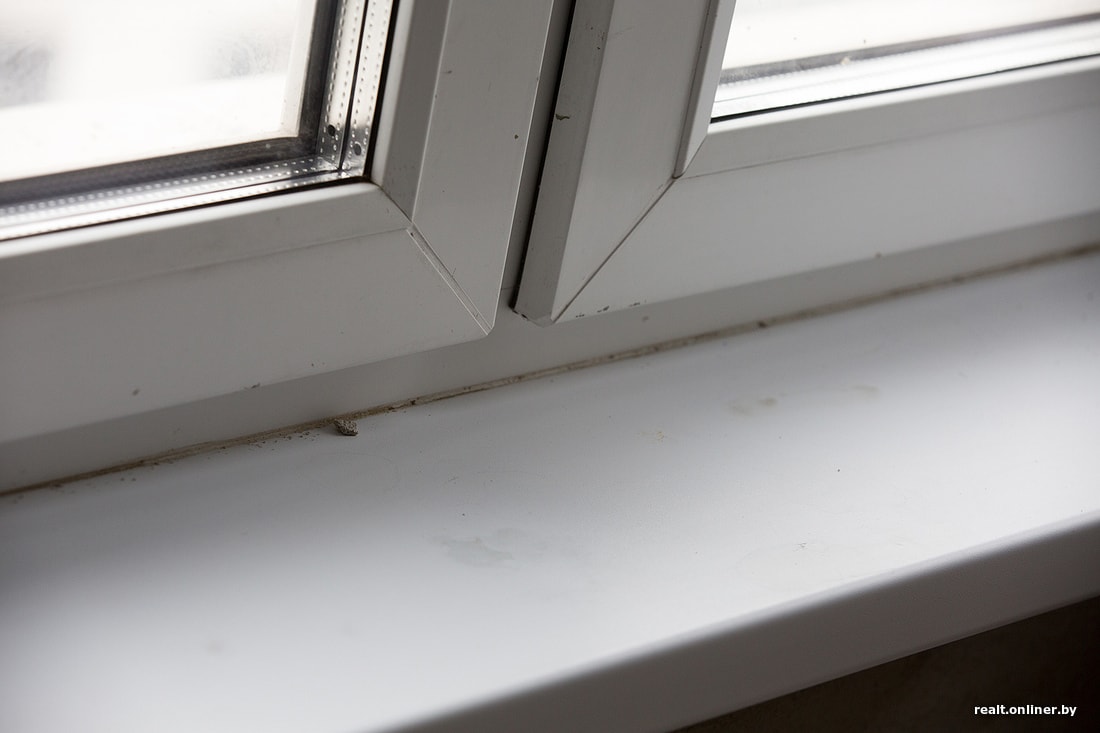 А вот царапин на стеклопакетах мастера оставили не много. Однако вернуться в эту квартиру им все же придется — чтобы отрегулировать окна, подправить жидким пластиком штапики, поменять кривые и испачканные подоконники, вернуть отливам правильный уклон.