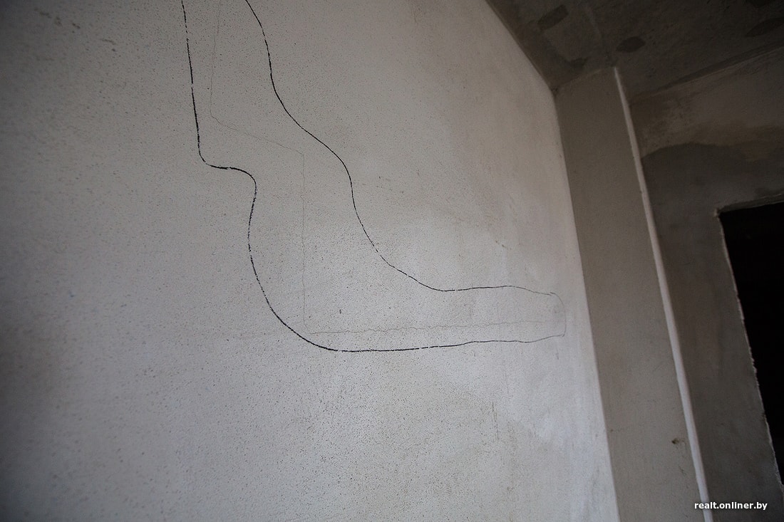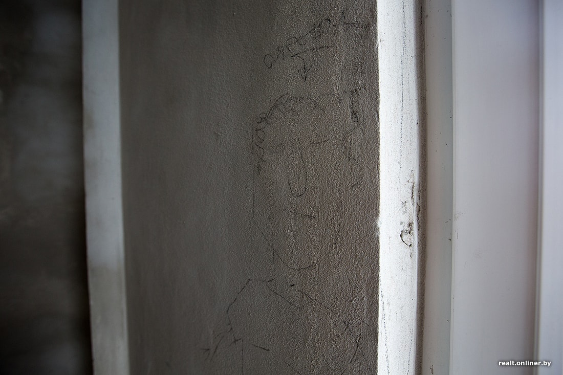 Разглядывая круглые отпечатки от кружек на подоконниках и окурки на полу, Марина предполагает, что в ее квартире уже жили — скорее всего, строители, которые оборудовали в «двушке» свою базу. Если внимательно присмотреться, то можно обнаружить и другие «артефакты» — от забытых кроссовок до наскальных рисунков: непонятные цифры на одной стене не вызывают трепета, а вот «Сярожа» возле окна в гостиной воспринимается как полноправный жилец.