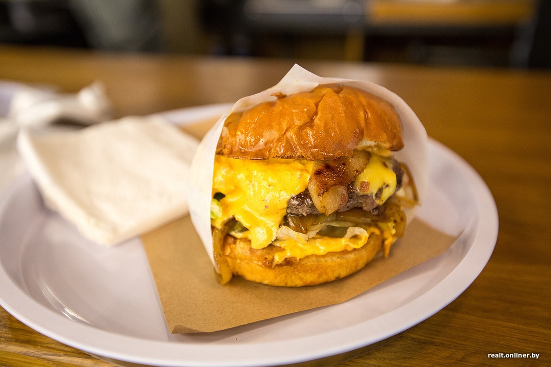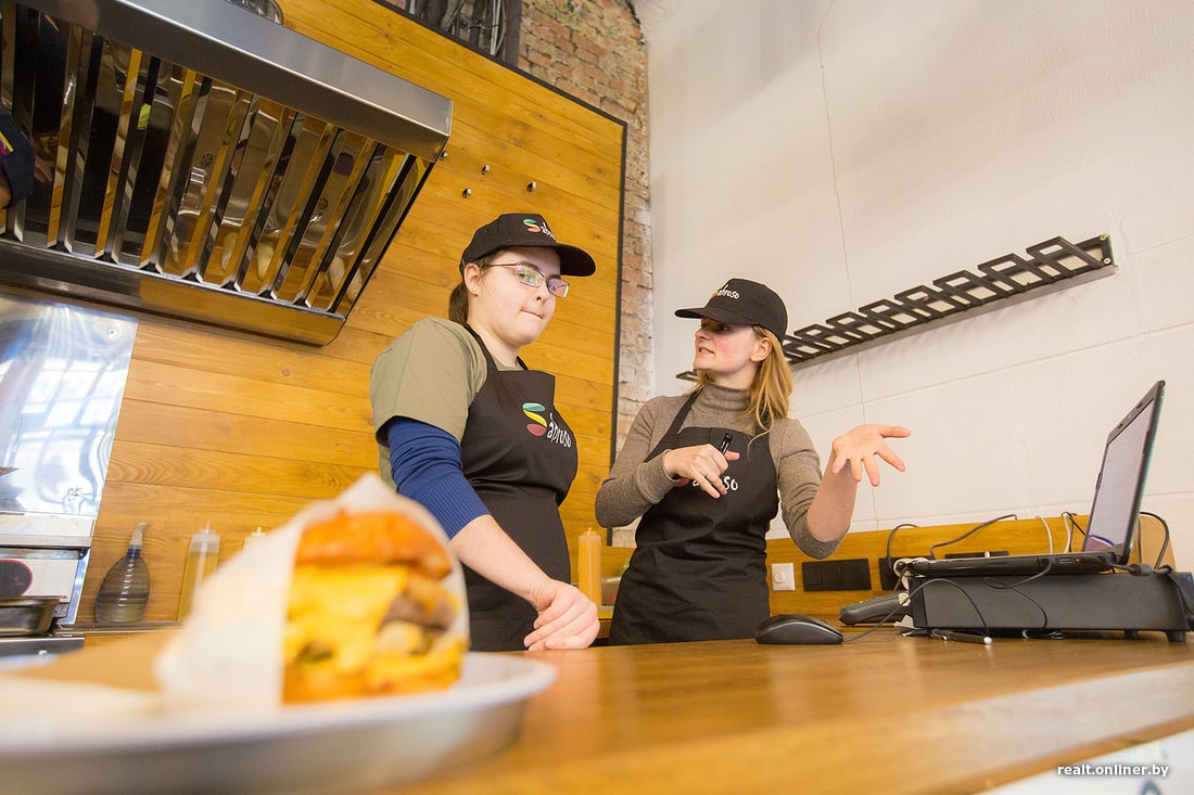 Как рассказали Onliner в Sabroso, столичное заведение практически не будет отличаться от молодечненского, однако некоторые нюансы все же есть. Цены на ряд позиций в столице немного выше — буквально на 50 копеек — рубль. Меню, за исключением нескольких не самых ходовых бургеров, тоже будет таким же. Основные позиции в Минске стоят в районе 6—9 рублей, большие бургеры с двумя котлетами — 11 рублей.