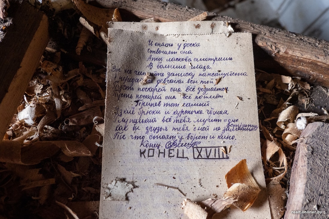 Сам же дом за годы сильно обветшал. На стенах видны подтеки, окна разбиты, пол местами опасно хрустит и потрескивает. Русская печка, обложенная увесистым белым кафелем, накренилась и, вероятно, рассыпалась изнутри. Благо вторая пока работает.