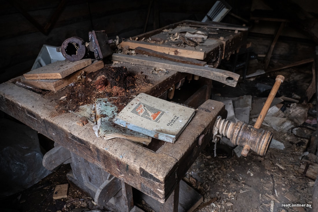 Каменный дом с деревянной верандой на северной стороне был построен еще в тридцатых годах. Когда-то здесь жил сельский плотник. Видимо, мужик был рукастый и зажиточный: во дворе мастерская, конюшня, свинарник, курятник, сарай и баня. В мастерской можно найти много любопытных вещиц — от школьных тетрадей шестидесятых годов до старых станков и рабочих инструментов.