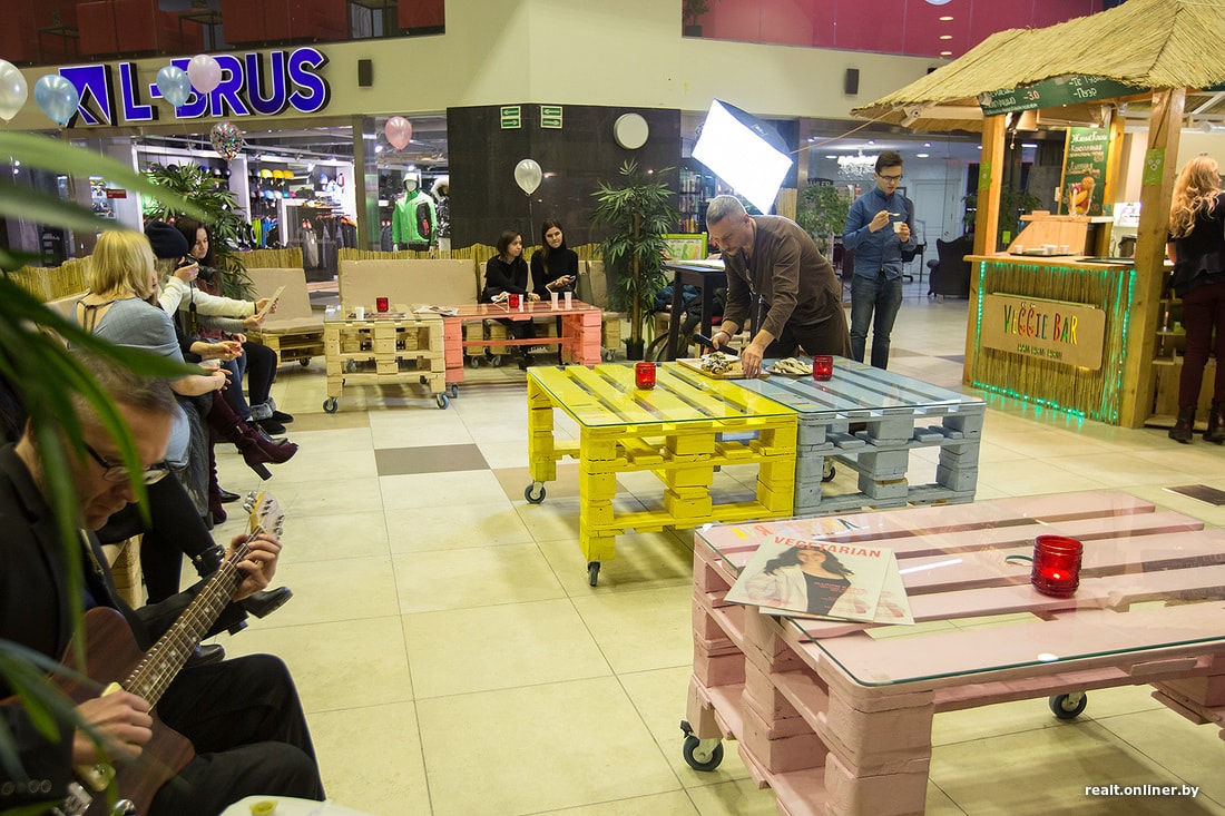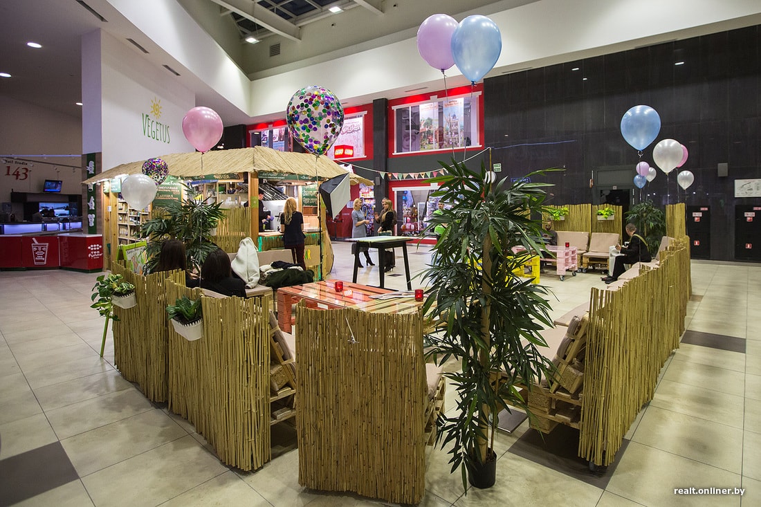 Вчера в ТЦ «Арена-сити» презентовали новое вегетарианское кафе-магазин, которое заработало в полную мощь после периода внезапного закрытия торгового центра и тестового режима. Островок с посадочными местами в стиле «море, солнце, пальмы» расположился недалеко от кинотеатра Silver Screen. В кафе можно не только полноценно поесть веганской пищи, но и купить сладости и продукты с собой.